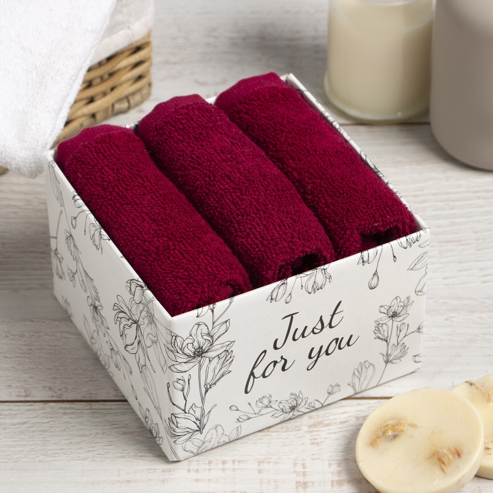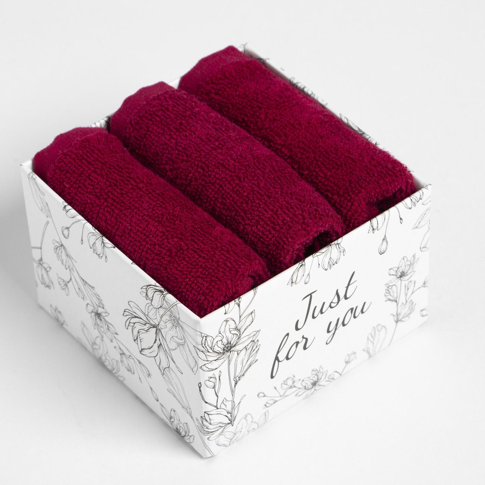 Набор декоративных махровых салфеток Этель "Just for you" вишнёвый, 30х30см-3шт, 340гр/м2, 100% хлопок
