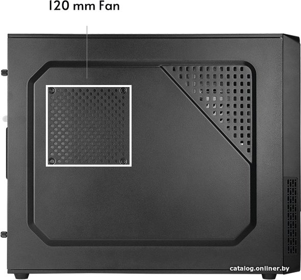 • Конфигурация вентиляторов сбоку: 1x120mmсверху: 1x120mmснизу: 1x120mmсзади: 2x60mm