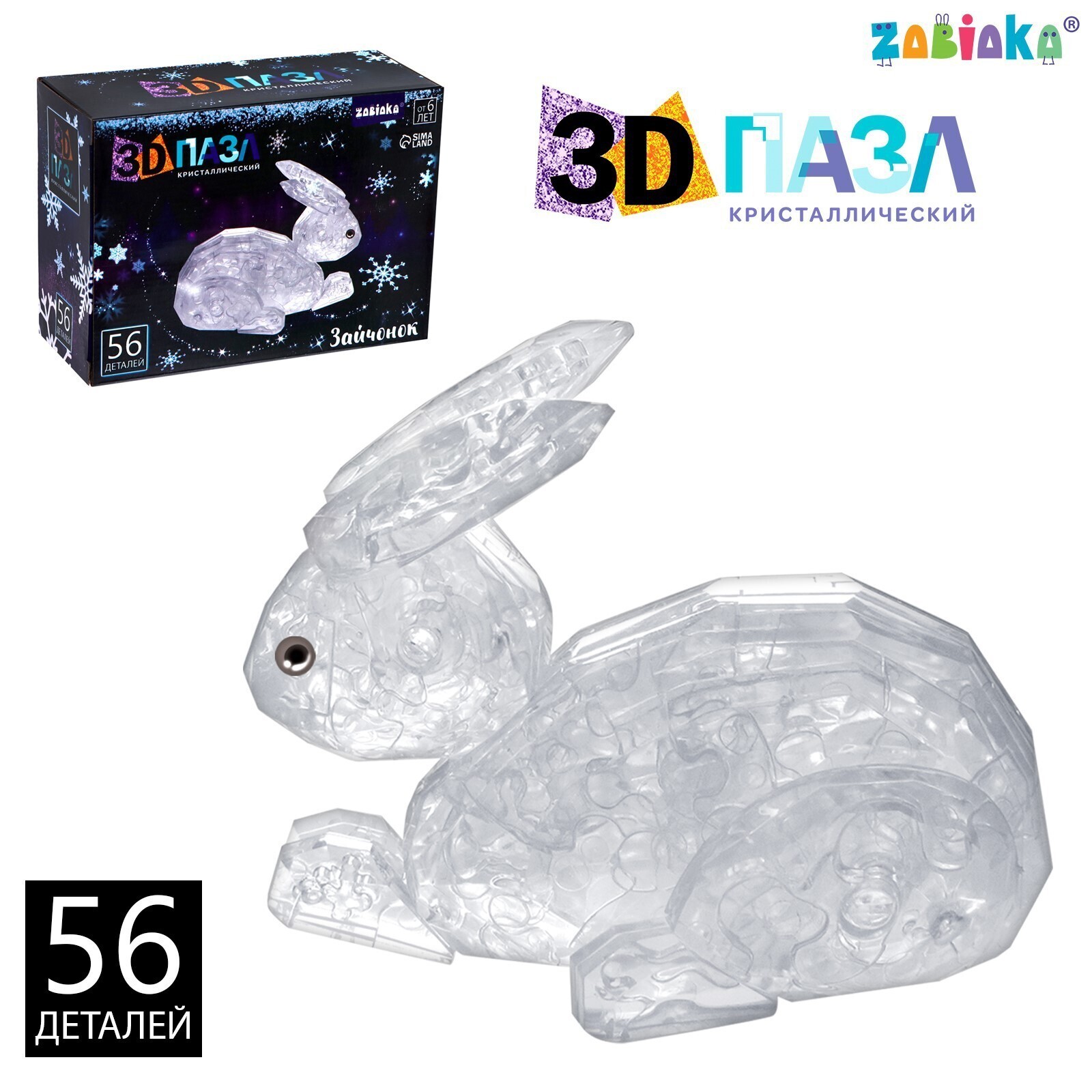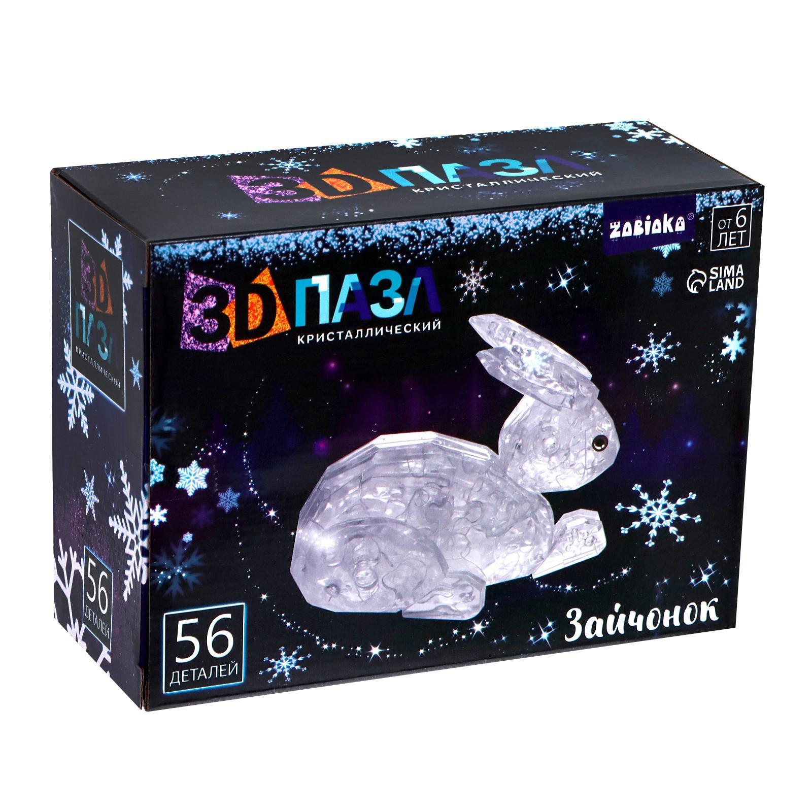 Пазл 3D кристаллический «Зайчонок», 56 деталей, цвет белый