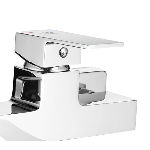 Смеситель Laveo Kvadrato BLQ 050D хром однорычажный смеситель для умывальника с поворотным изливом, керамический картридж 35 мм, подключение G1/2”, настенный монтаж, расход воды - до 15 л/мин, металлическая рукоятка с индикацией горячей и холодной воды. Серия Kvadrato - это современная сантехника, предназначенная для любителей правильных форм. Угловатые корпуса в сочетании с квадратными рычагами идеально подходят для современных футуристических интерьеров.