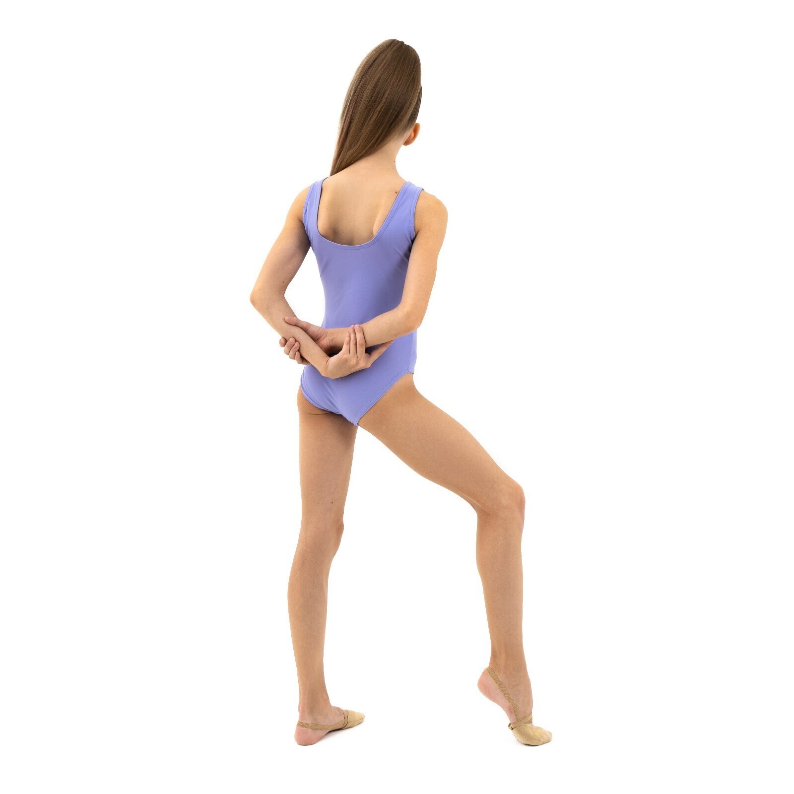 Купальник гимнастический на широких бретелях, лайкра, цвет сирень, размер 28