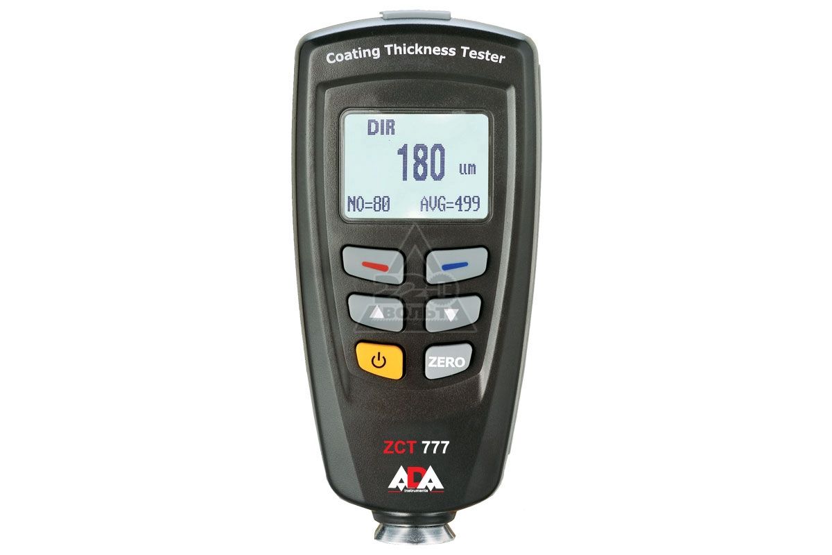 Толщиномер покрытий ADA ZCT 777 позволяет: измерять в двух режимах (непрерывный и одиночный), в двух рабочих режимах (прямой и группа), проводить калибровку, запоминать до 320 измерений, контролировать выход за заданные значения (Hi, Lo), передавать данные на ПК и пр. Толщиномер ZCT 777 предназначен для работы в лабораториях, мастерских, в химической, автомобильной, судостроительной и авиационной промышленностях.