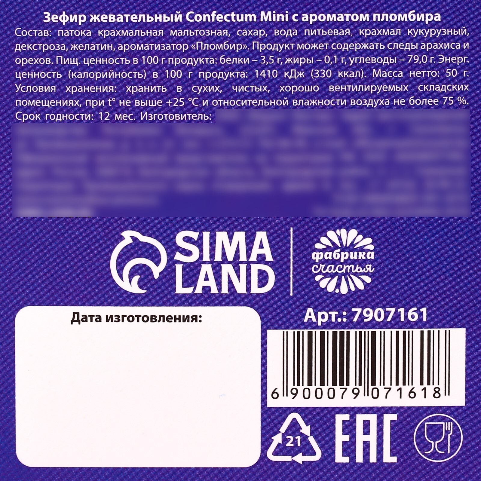 Состав: патока крахмальная мальтозная, сахар, вода питьевая, крахмал кукурузный, декстроза, желатин, ароматизатор «Пломбир».