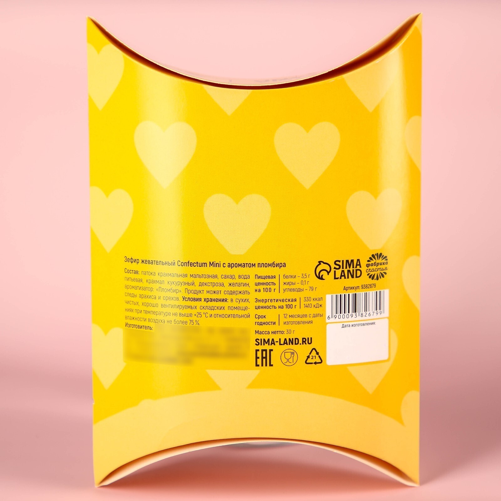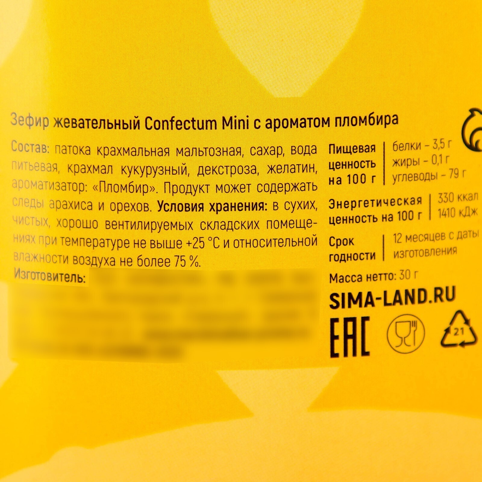 Состав: патока крахмальная мальтозная, сахар, вода питьевая, крахмал кукурузный, декстроза, желатин, ароматизатор: «Пломбир».