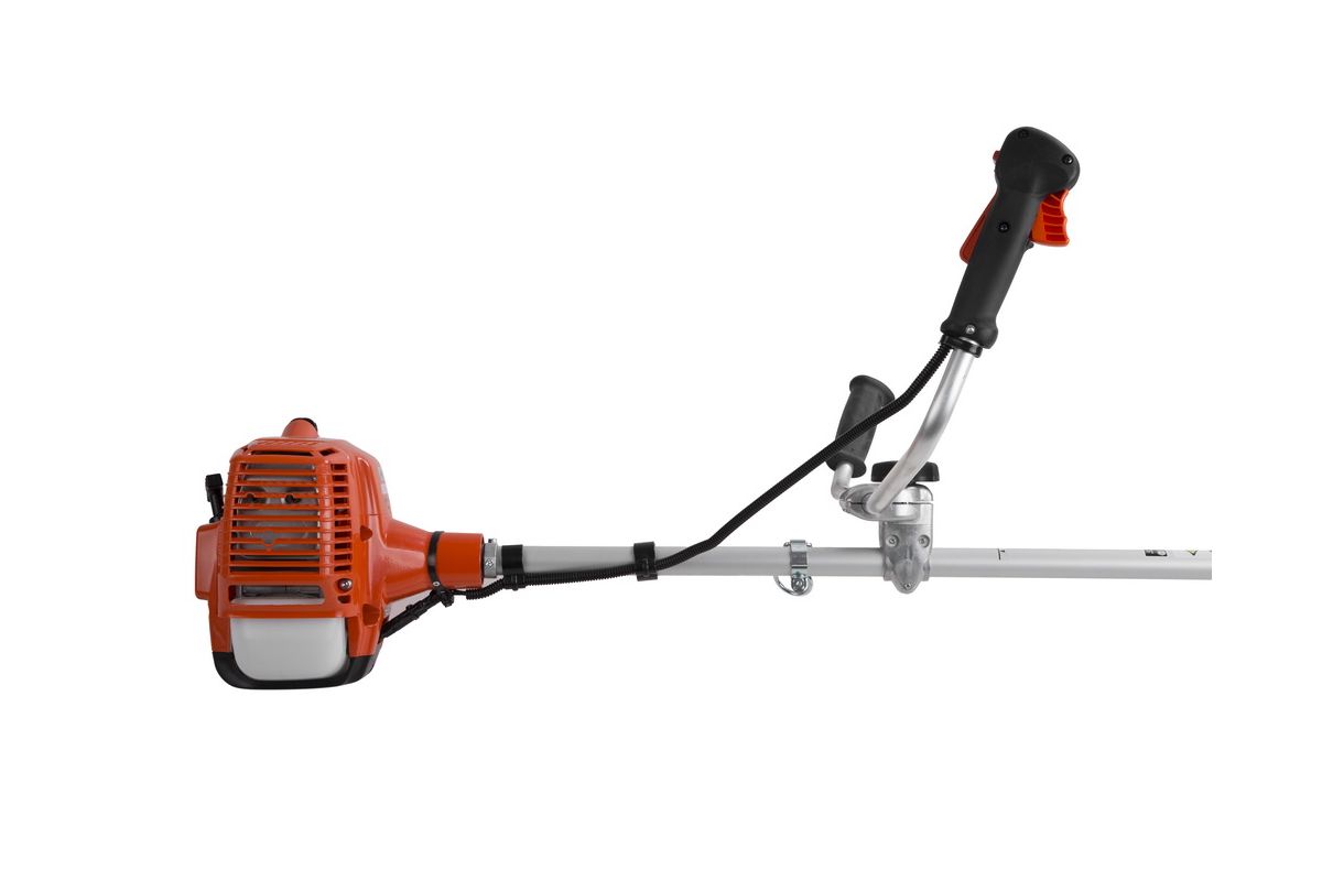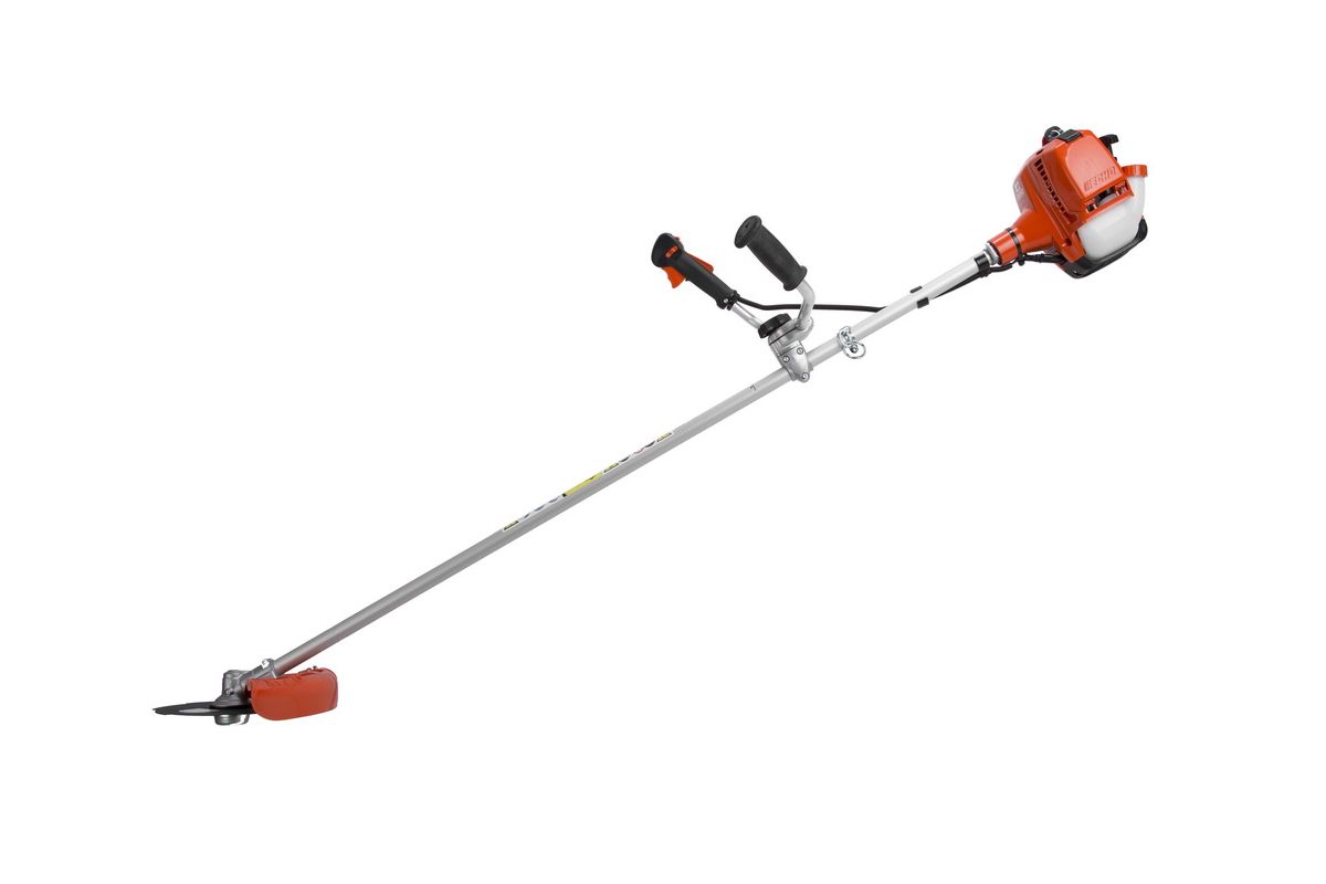 Эргономичная конструкция мотокосы облегчает эксплуатацию и уход за ней. Длина штанги и расположенная на ней U-образная ручка способствуют удобному захвату косы оператором, поворотам и наклонам. Плечевые трехточечные ремни фиксируют ее в безопасном положении и обеспечивают дополнительный комфорт, так как уменьшают нагрузку на спину и плечи оператора. Рукоятка имеет специальный стопор курка, предохраняющий от случайного включения. Модель оснащена уникальной системой виброгашения. Также предусмотрен упрощенный запуск ES-start, а праймер подкачки значительно облегчает включение холодного двигателя.