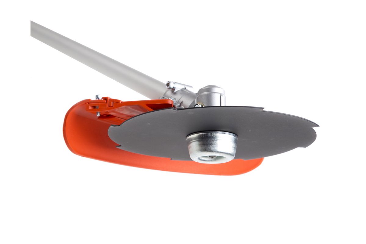 В зависимости от качества растительности на участке имеется возможность выбора режущей части. Для сухой травы, древовидной поросли, сорняков применяется трехлопастный ножевой диск. Для скашивания мягкой сочной травы удобнее использовать в качестве режущего инструмента леску.
