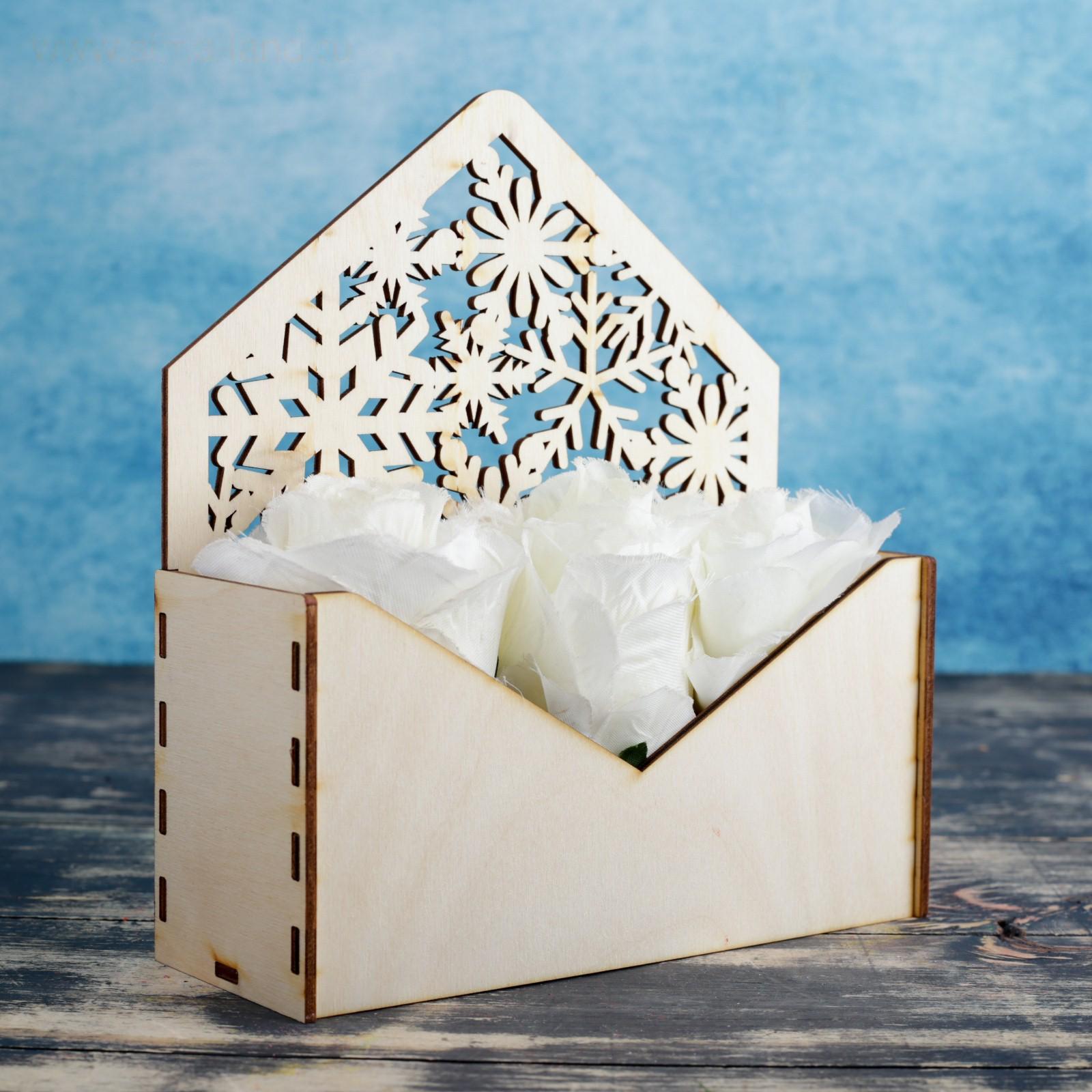 Кашпо деревянное 18×6×20 см Конверт Радель "Изморозь", натуральный Дарим Красиво