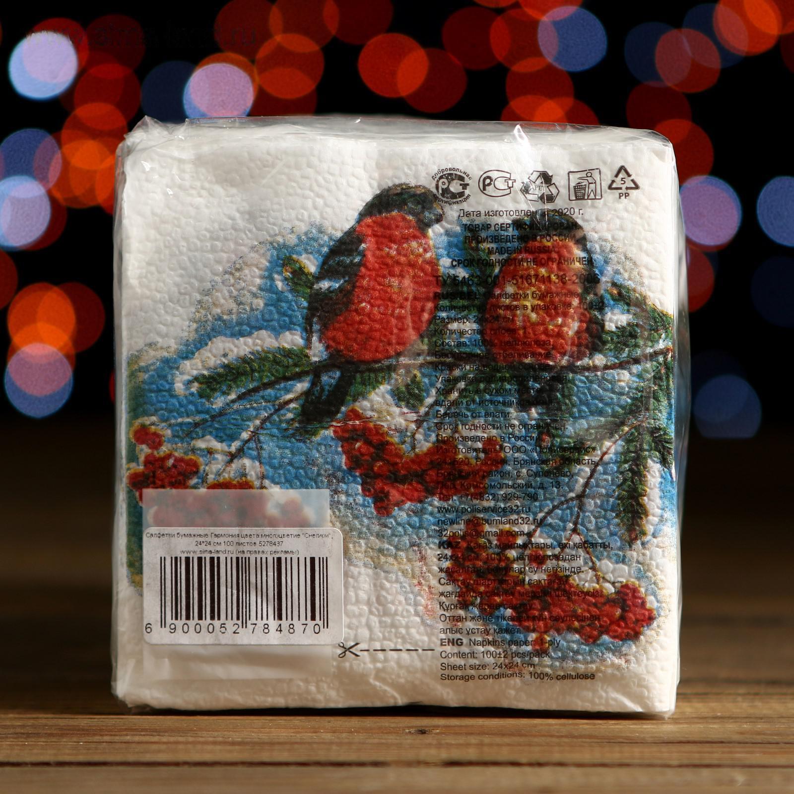 Салфетки бумажные "Гармония цвета", 24х24 см, 100 шт, с рисунком "Снегири"