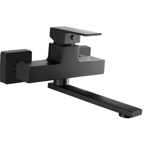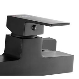 Смеситель Laveo Kvadrato BLQ 0750D черный однорычажный смеситель для умывальника с поворотным изливом, керамический картридж 35 мм, подключение G1/2”, настенный монтаж, расход воды - до 15 л/мин, металлическая рукоятка с индикацией горячей и холодной воды. Серия Kvadrato - это современная сантехника, предназначенная для любителей правильных форм. Угловатые корпуса в сочетании с квадратными рычагами идеально подходят для современных футуристических интерьеров.