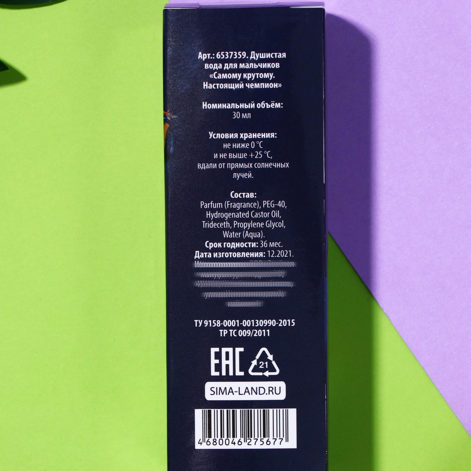 Душистая вода для мальчиков «Настоящий чемпион» (аромат - Нежная кожа), 30 мл.