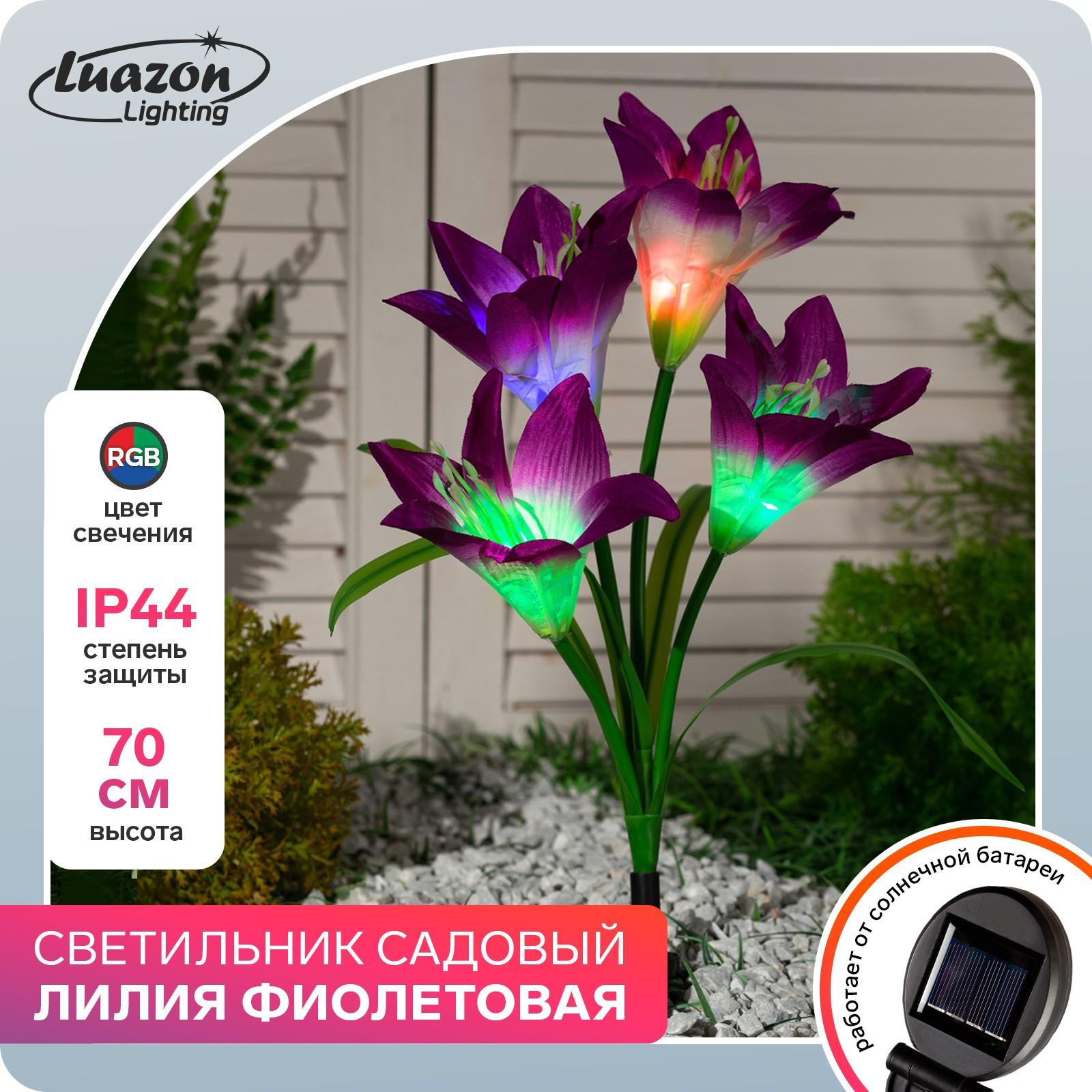 Садовый светильник на солнечной батарее «Лилия фиолетовая», 80 см, 4 LED, свечение мульти (RGB)