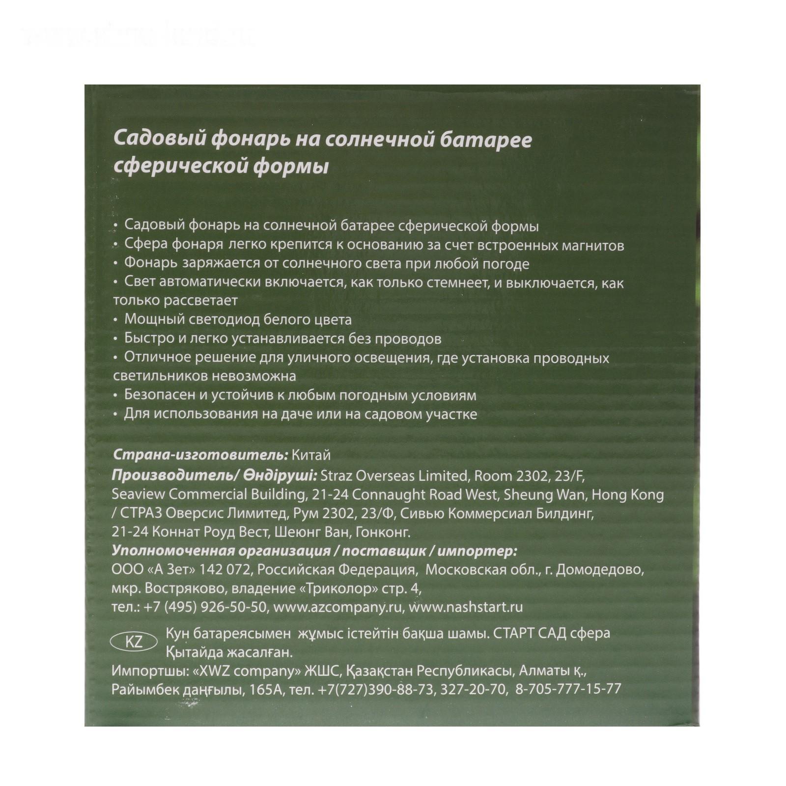 Садовый светильник «Старт» на солнечной батарее «Сфера», 15 × 48 × 15 см, свечение белое