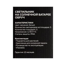 Садовый светильник на солнечно батарее «Обруч», 9 LED, свечение мульти