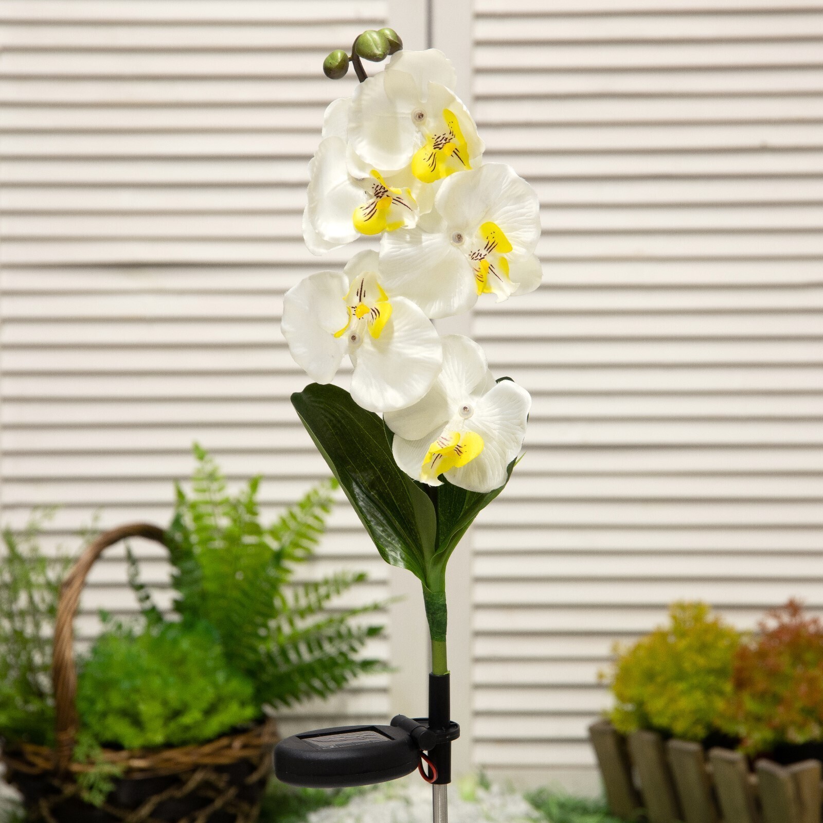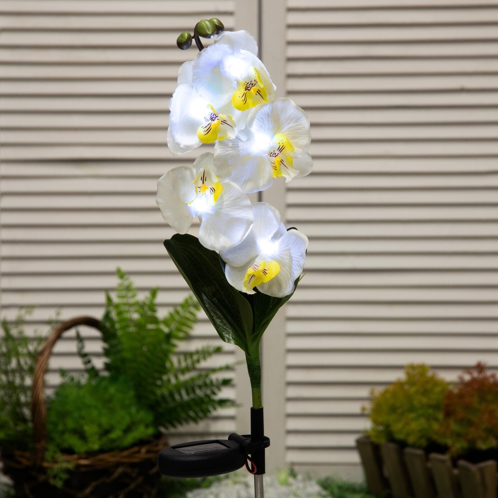 Садовый светильник на солнечной батарее «Белая орхидея», 74 см, 5 LED, свечение белое