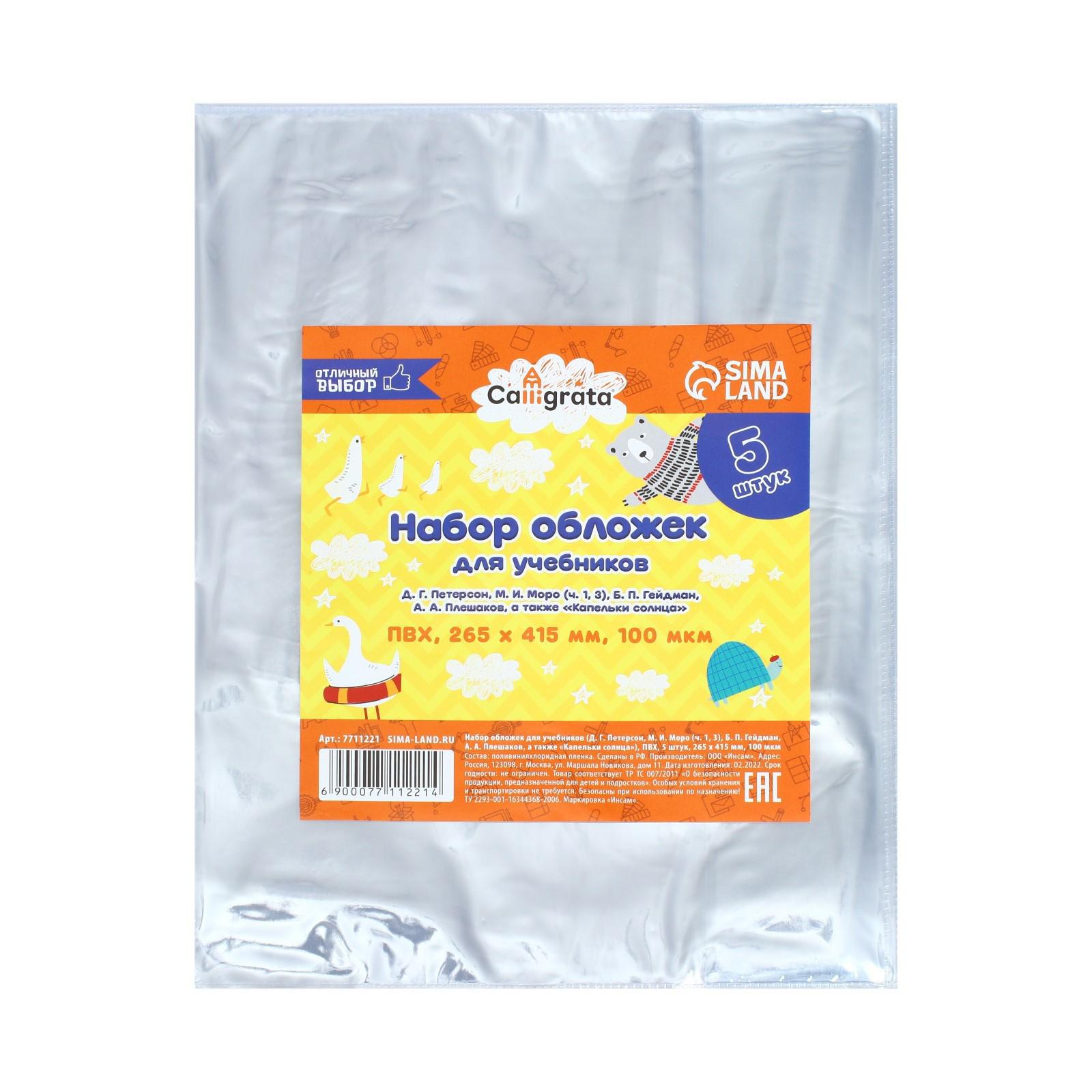 Набор обложек ПВХ 5 штук, 265 х 415 мм, 100 мкм, для учебников Петерсон, Моро (ч.1,3), Гейдман, «Капельки солнца», Плешаков