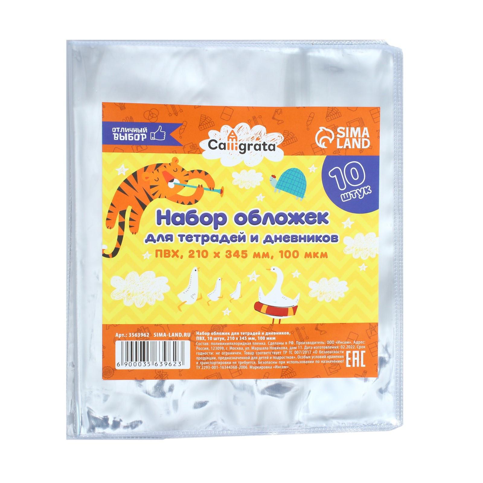 Набор обложек ПВХ 10 штук, 210 х 345 мм, 100 мкм, для тетрадей и дневников (в мягкой обложке)