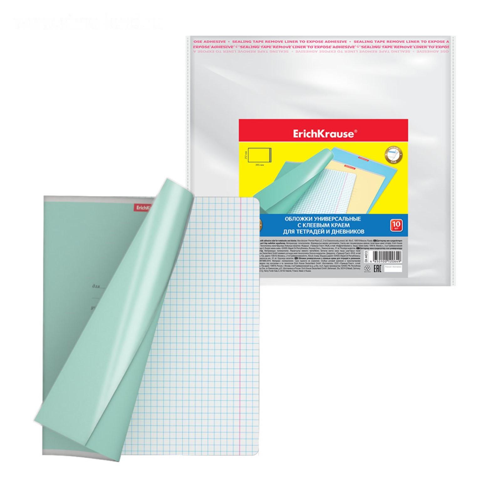 Набор обложек ПП 10 шт, 212 х 395 мм, 50 мкм, ErichKrause "Fizzy Clear", для тетрадей и дневников, с клеевым краем, с тиснением