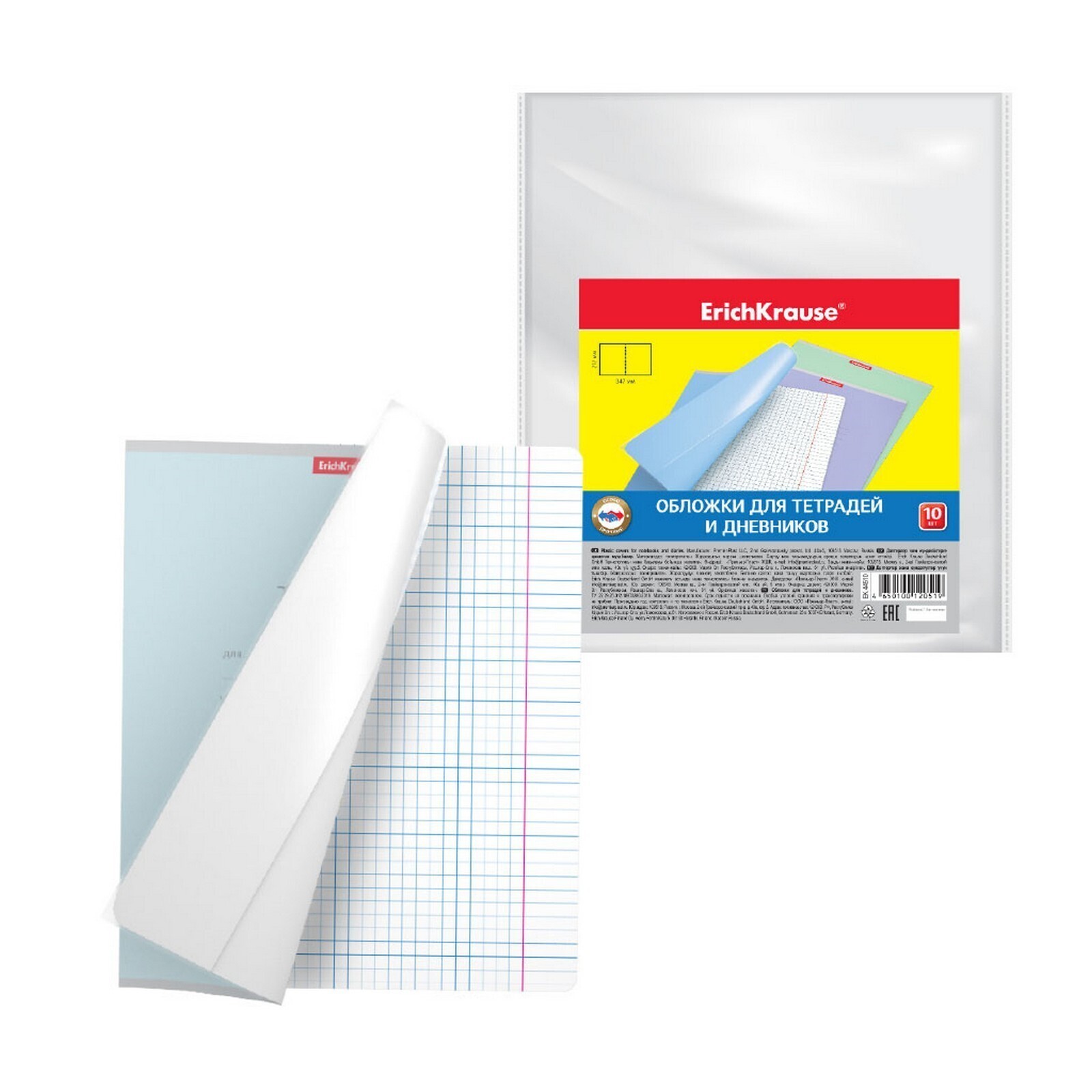 Набор обложек ПП 10 шт, 212 х 347 мм, 80 мкм, ErichKrause, Fizzy Clear, для тетрадей и дневников, с тиснением, фиксированная