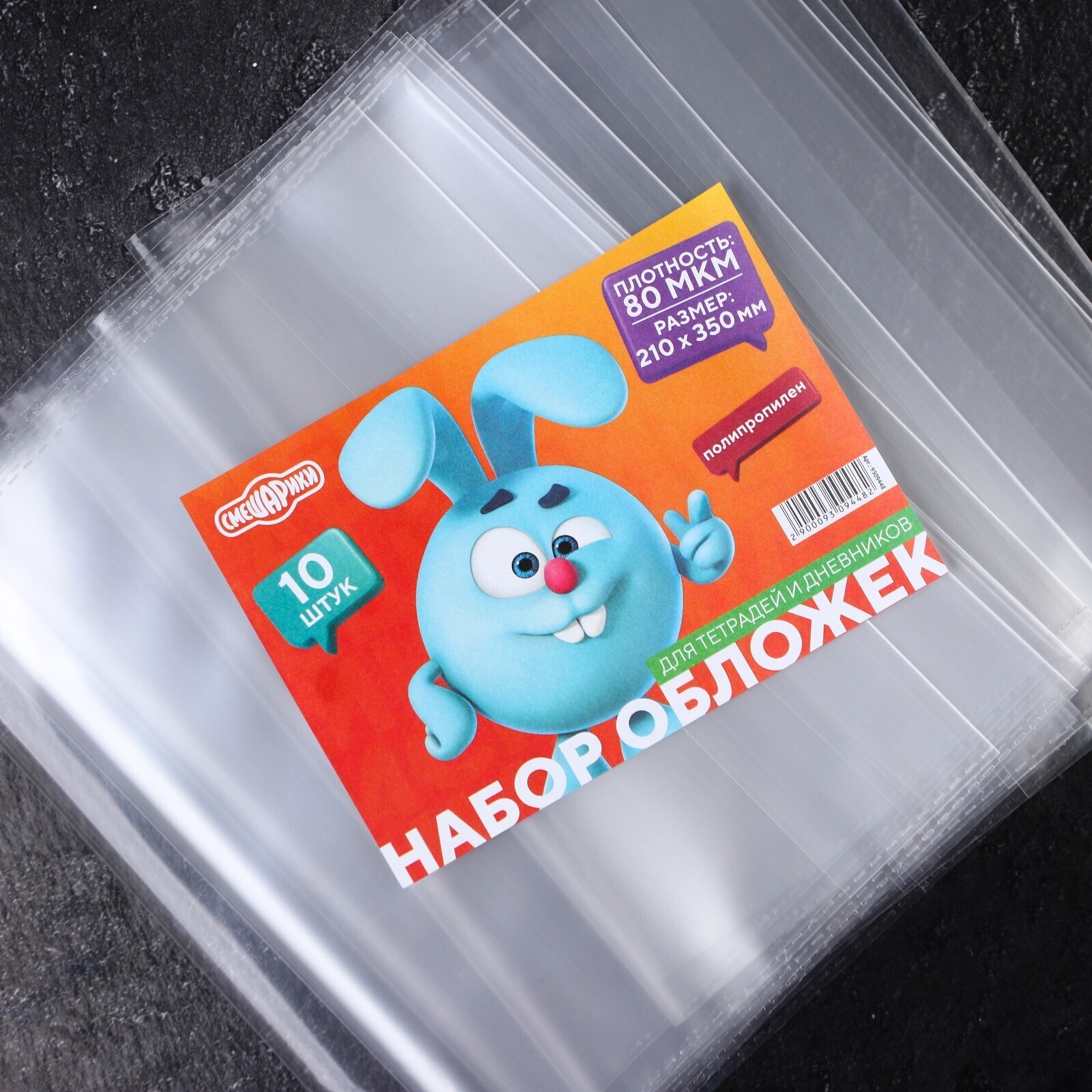 Набор обложек для тетради, 80 мкм, полипропилен, 10шт, Смешарики