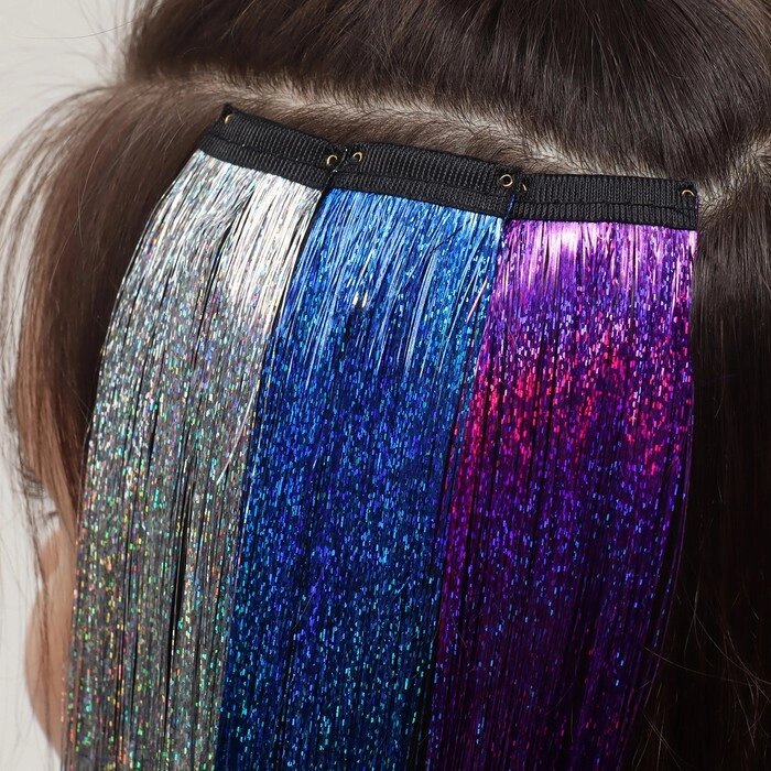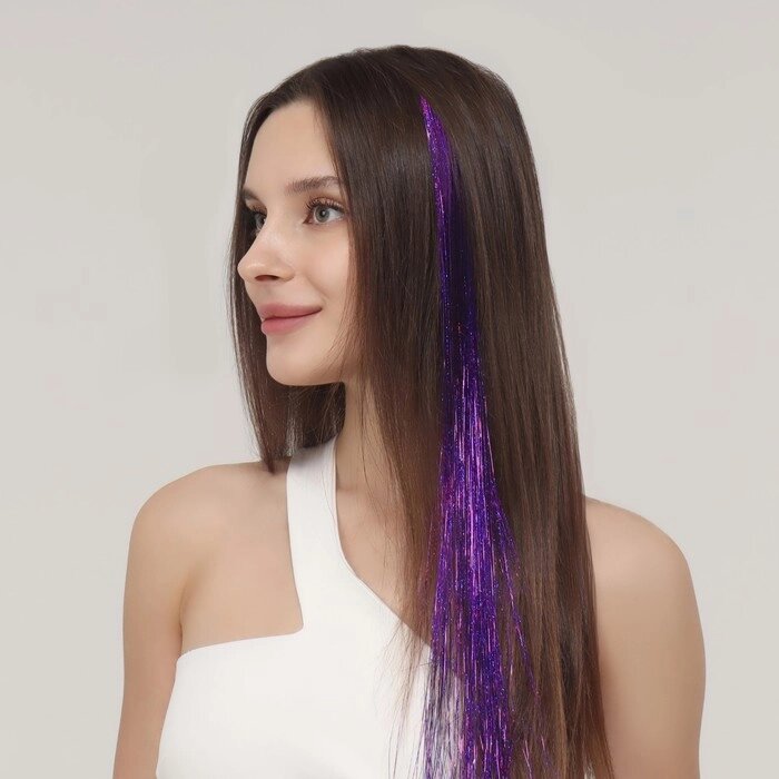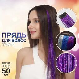 Прядь для волос, дождик, на заколке, 50 см, цвет фиолетовый