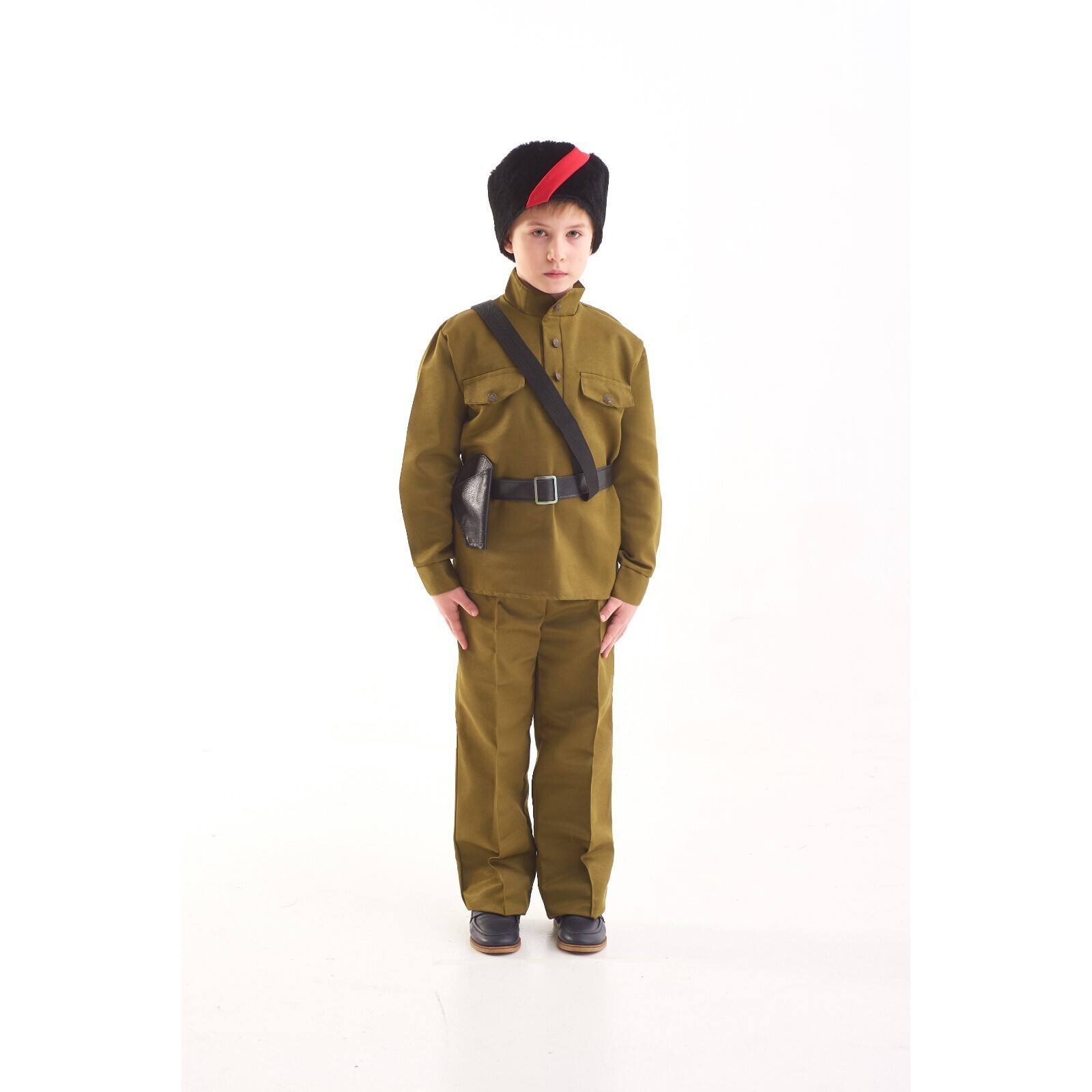 Карнавальный костюм "Партизан", кубанка, гимнастёрка, портупея, брюки, 5-7 лет, рост 122-134 см