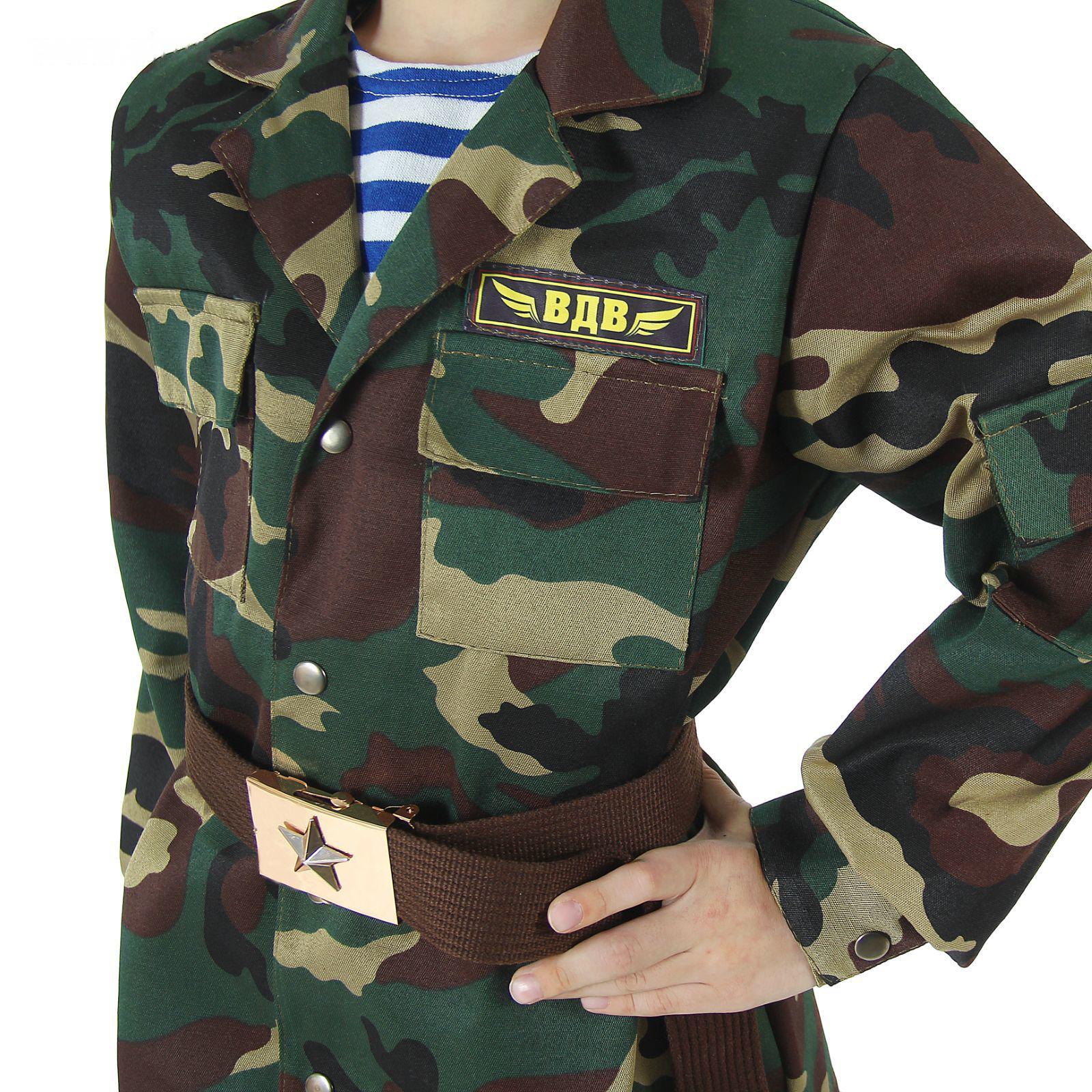 Карнавальный костюм «ВДВ», китель с манишкой, брюки, берет, ремень, р. 32, рост 128 см