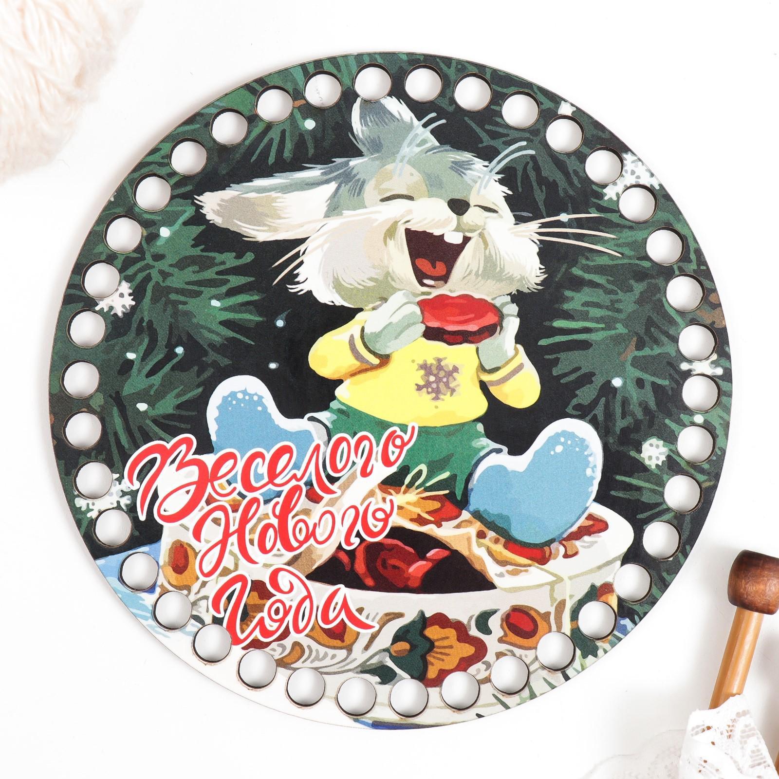 Заготовка для вязания "Круг. Зайка и сладости" донышко 15 см
