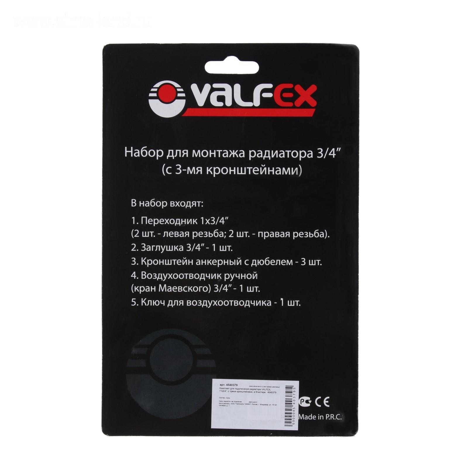 Комплект для подключения радиатора VALFEX, 1"x3/4", с тремя кронштейнами, в блистере