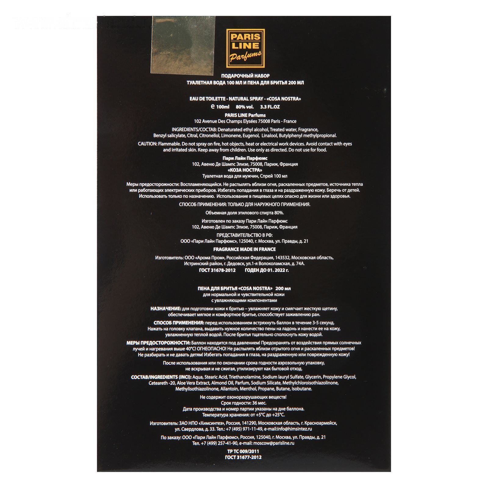 Подарочный набор Cosa Nostra. Туалетная вода и пена для бритья представлены в едином аромате. Cosa Nostra - туалетная вода для мужчин, живущих в ритме сегодняшнего дня, свободных, пылких, энергичных, завораживающих своим обаянием. Верхние ноты увлекают фруктовой свежестью, соблазнительный аккорд бергамота и шалфея покоряет сердце, а шлейф очаровывает многогранным звучанием пачули и сандала. Любимым ароматом Cosa Nostra теперь можно наслаждаться и при бритье. Пена для бритья для нормальной и чувствительной кожи с увлажняющими компонентами смягчает жесткую щетину, увлажняет кожу, обеспечивает мягкий и комфортный уход.