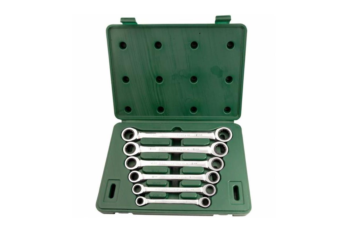 6PC DOUBLE BOX RATCHETING WRENCH SET (METRIC) Ключи метрические накидные комбинированные с реверсивным трещоточным механизмом: Размеры (мм): 8х9, 10х11, 12х13, 14х15, 16х18, 17х19. Преимуществом любого набора марки SATA является то, что любую его составляющую вы можете приобрести отдельно.