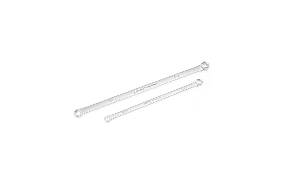 Удлиненные двусторонние накидные ключи из хромованадиевой стали, применяются в условиях ограниченного пространства, при работе со шкивами, радиаторами охлаждения, а также для обслуживания элементов подвески и рулевого механизма. Никелирование с защитным лаковым слоем.