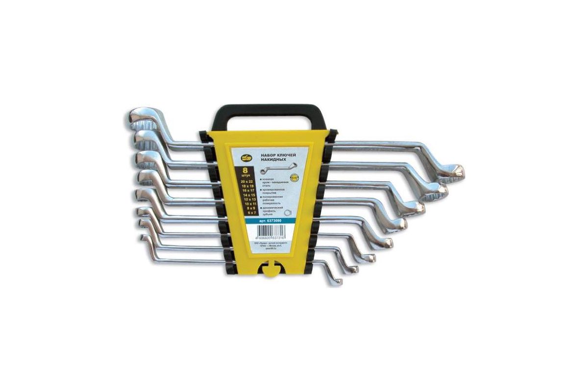 Ключи гаечные коленчатые имеют два кольцевых зева разных размеров. Профиль кольцевого зева имеет 12 граней, что увеличивает площадь соприкосновения рабочих поверхностей и снижает риск деформации граней крепежа при монтаже. Накидные рабочие части ключа смещены относительно его рукоятки, что позволяет работать в труднодоступных местах. Изготовлен из углеродистой стали. Твердость накидной рабочей части – 41 HRc (требования ГОСТ – 41–46 HRc). Ключи имеют надежное антикоррозионное покрытие из хрома. Ключи упакованы в полиэтилен. Набор предназначен для монтажа демонтажа резьбовых соединений.