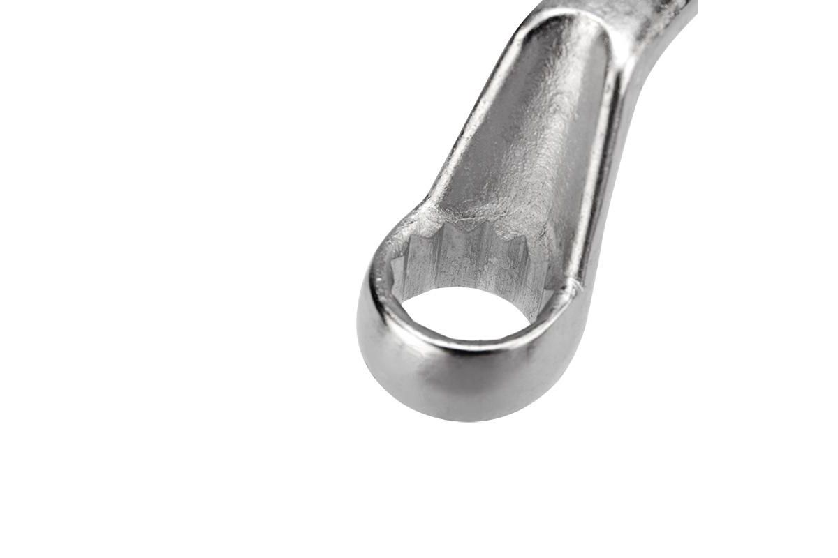 Гаечный накидной коленчатый ключ подходит для заворачивания крепежа, расположенного в углублениях окрашенных деталей. Инструмент позволяет избежать царапин. Прочность тела ключа увеличена за счет ребер жесткости. Оптимальная длина инструмента позволяет работать даже с тугим крепежом.