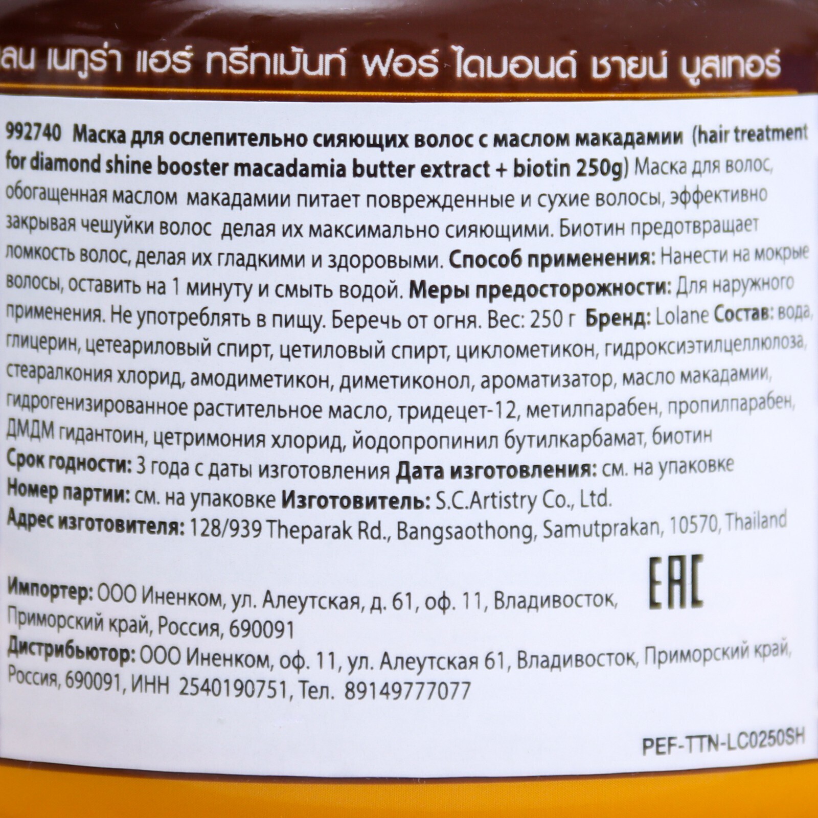 Маска для ослепительно сияющих волос Lolane с маслом макадамии, 250 г