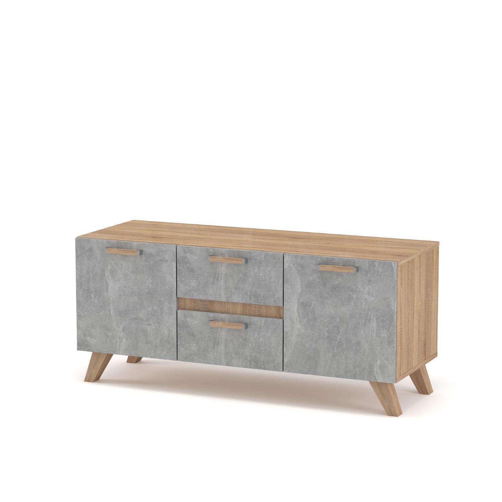 Тумба ТВ Фарго, 1184х436х524, Дуб сонома/Бетон светлый