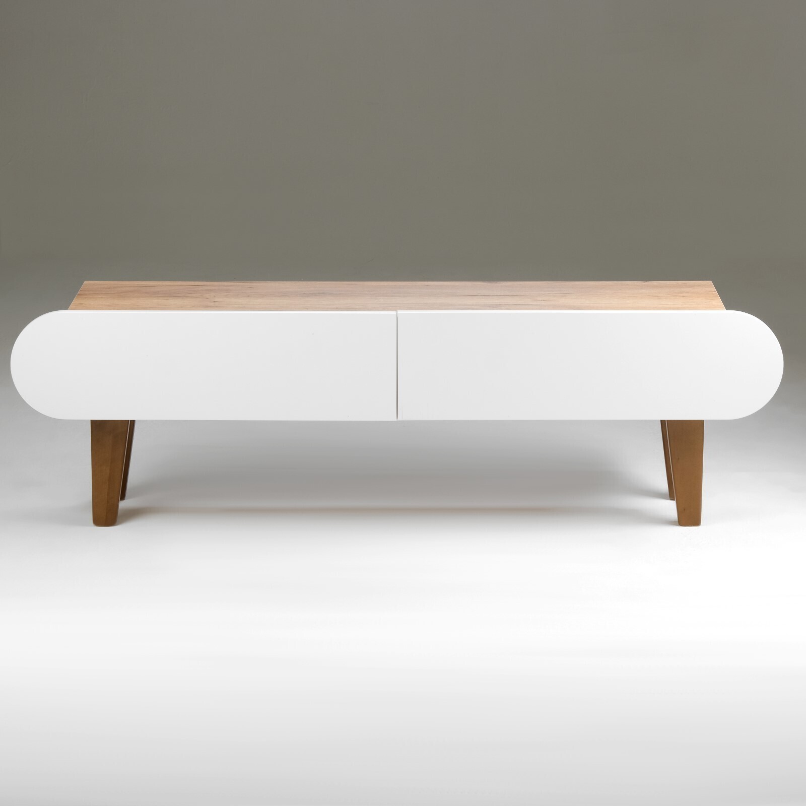 Тумба под ТВ Пандора 2, 1400х340х410, Дуб крафт золотой/Белый МДФ