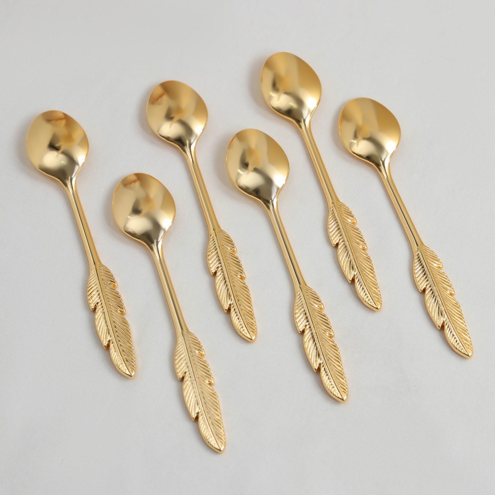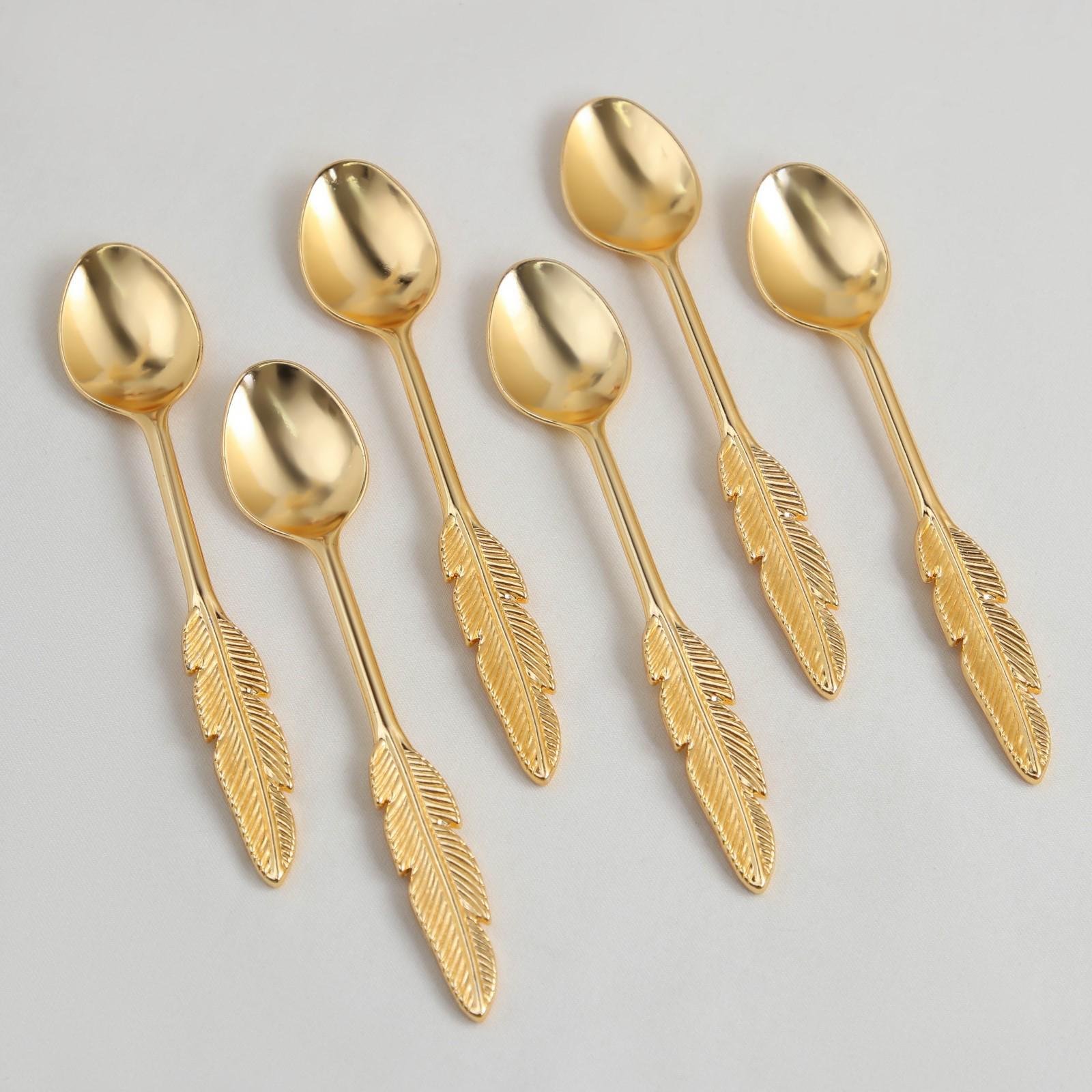 Набор ложек на подставке Eternity Перо, 8,5×7,5×8,5 см, 6 шт, цвет золотой