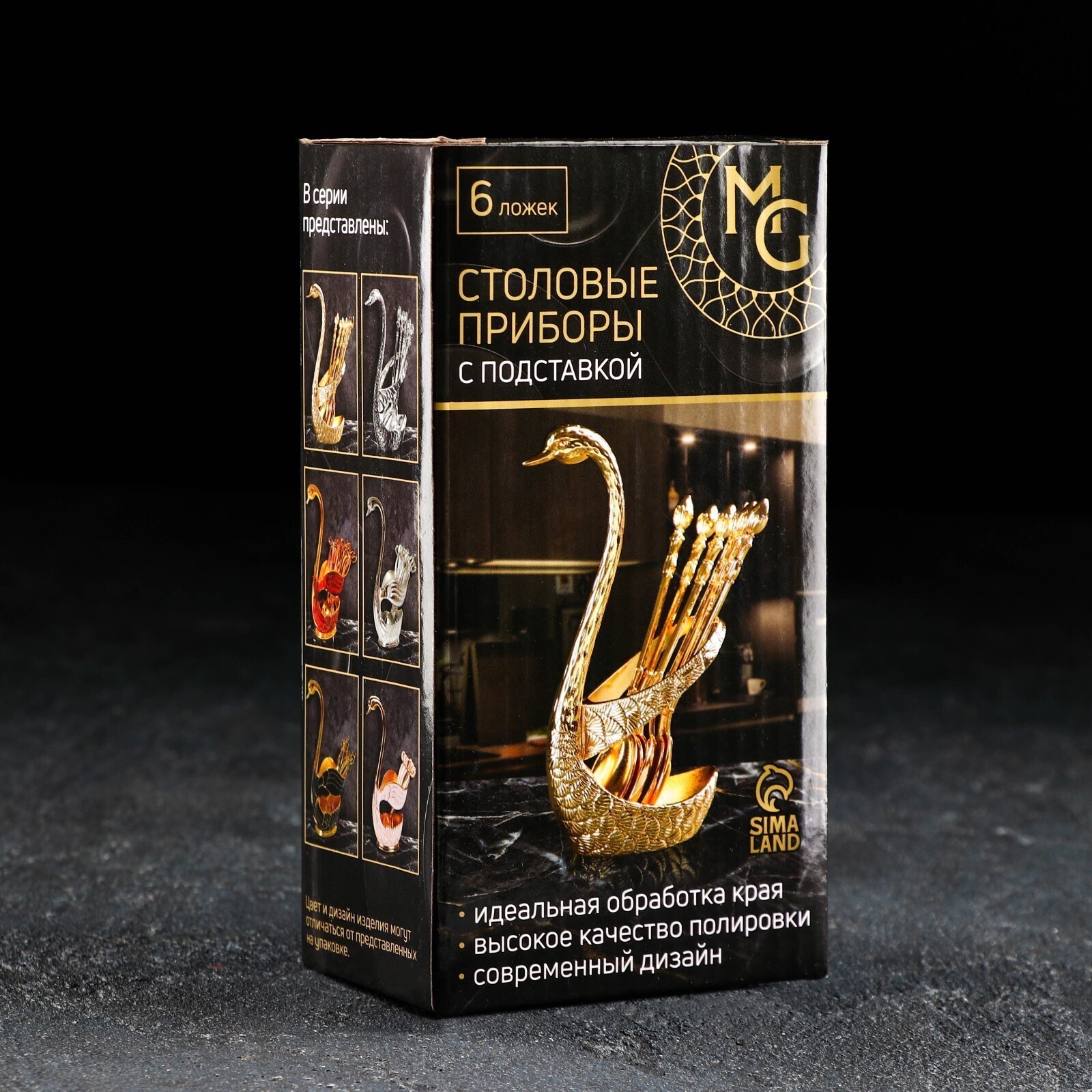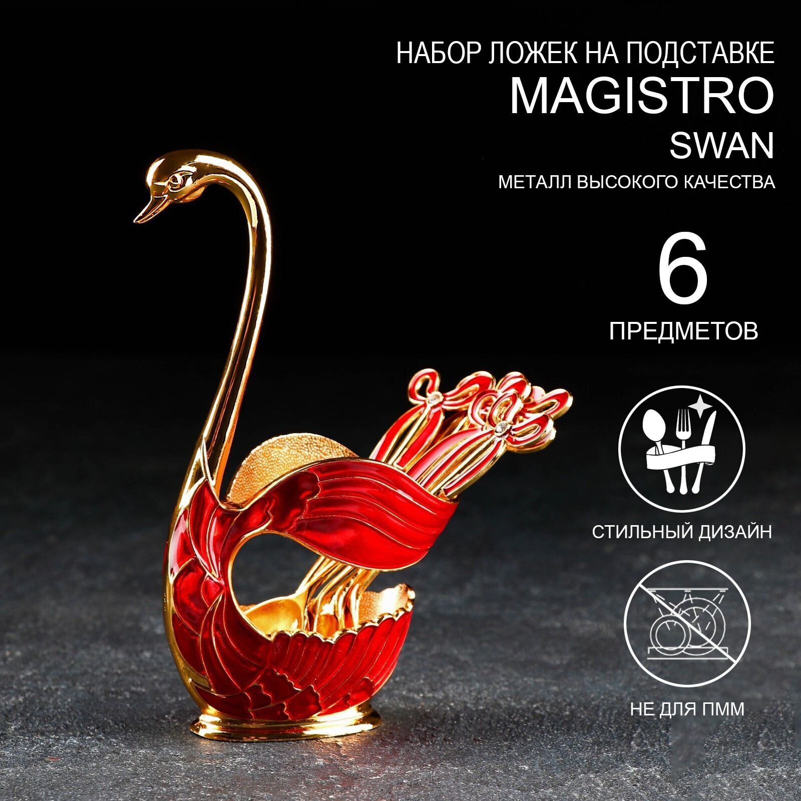 Набор ложек на подставке Magistro Swan, 7,5×4,5×15 см, 6 шт, цвет красный
