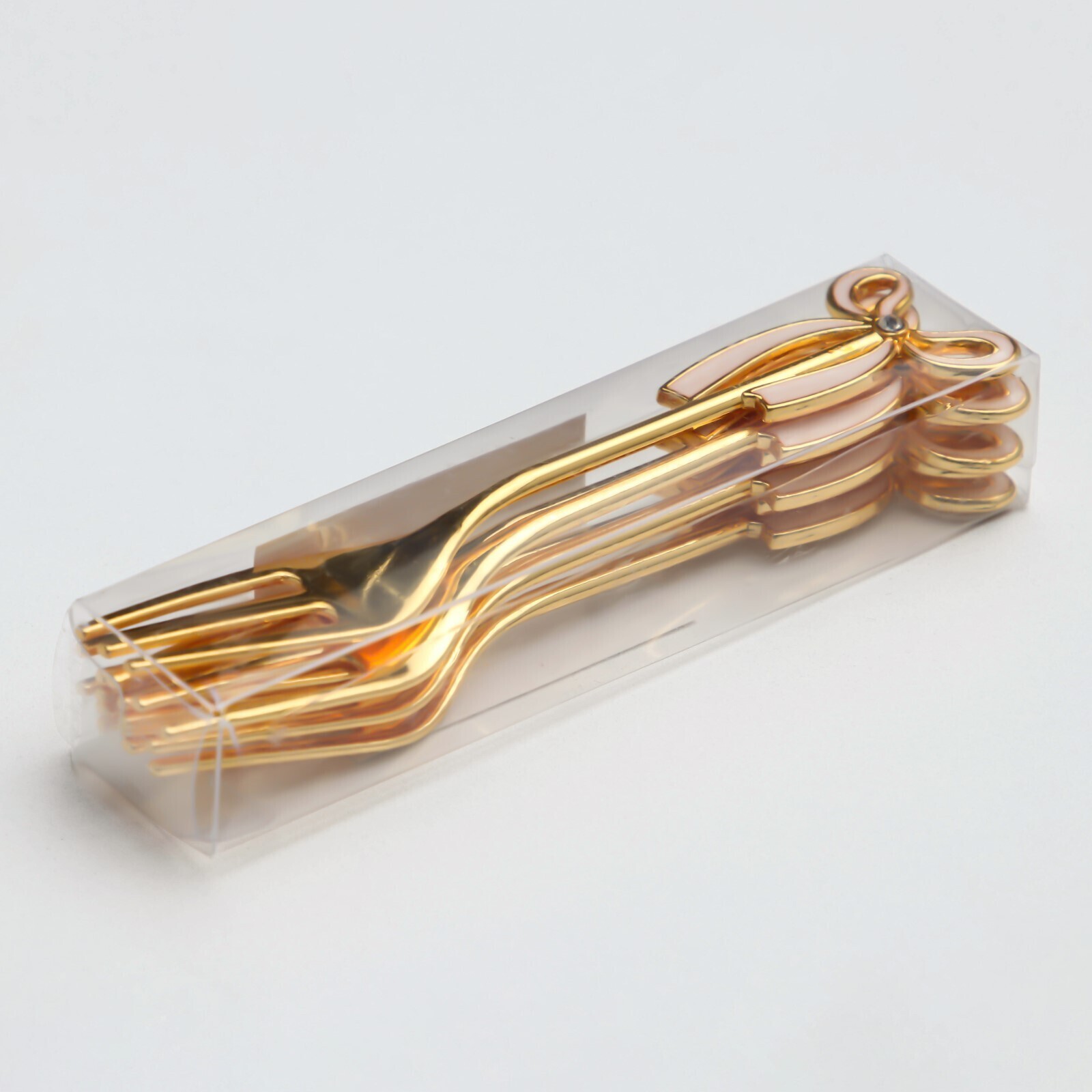 Набор вилок для фруктов «Бант», h=11 см, 6 шт, цвет золотой