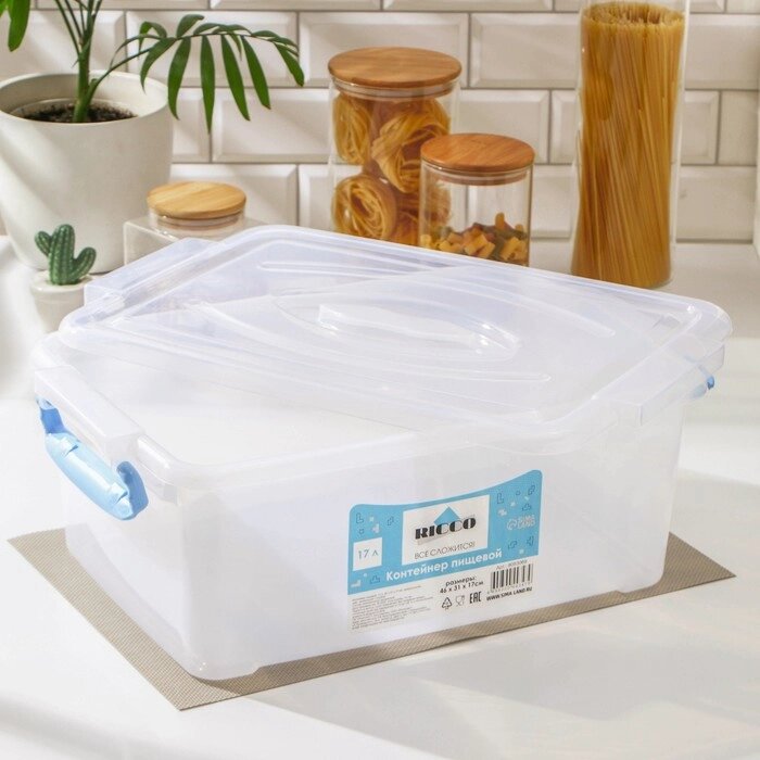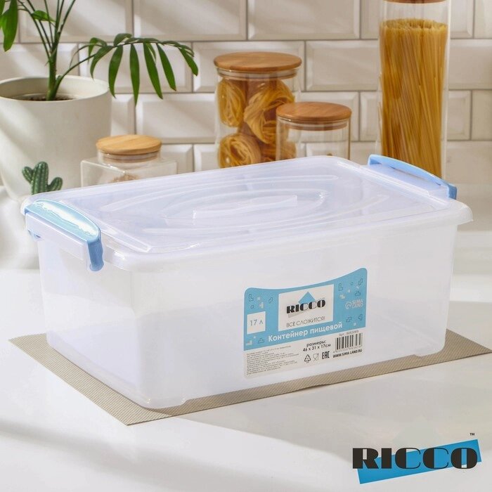 Контейнер пищевой 17л 46х31х17см прямоуг, цвет прозрачный/голубой