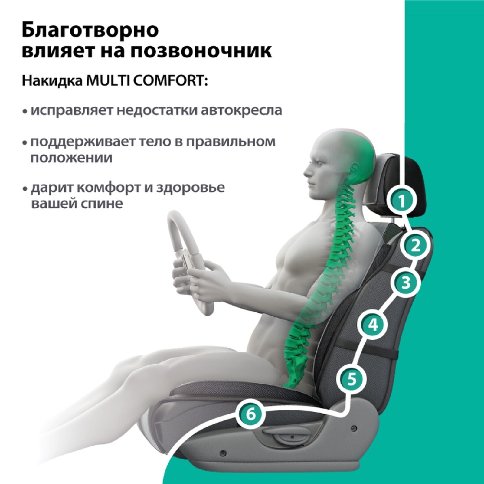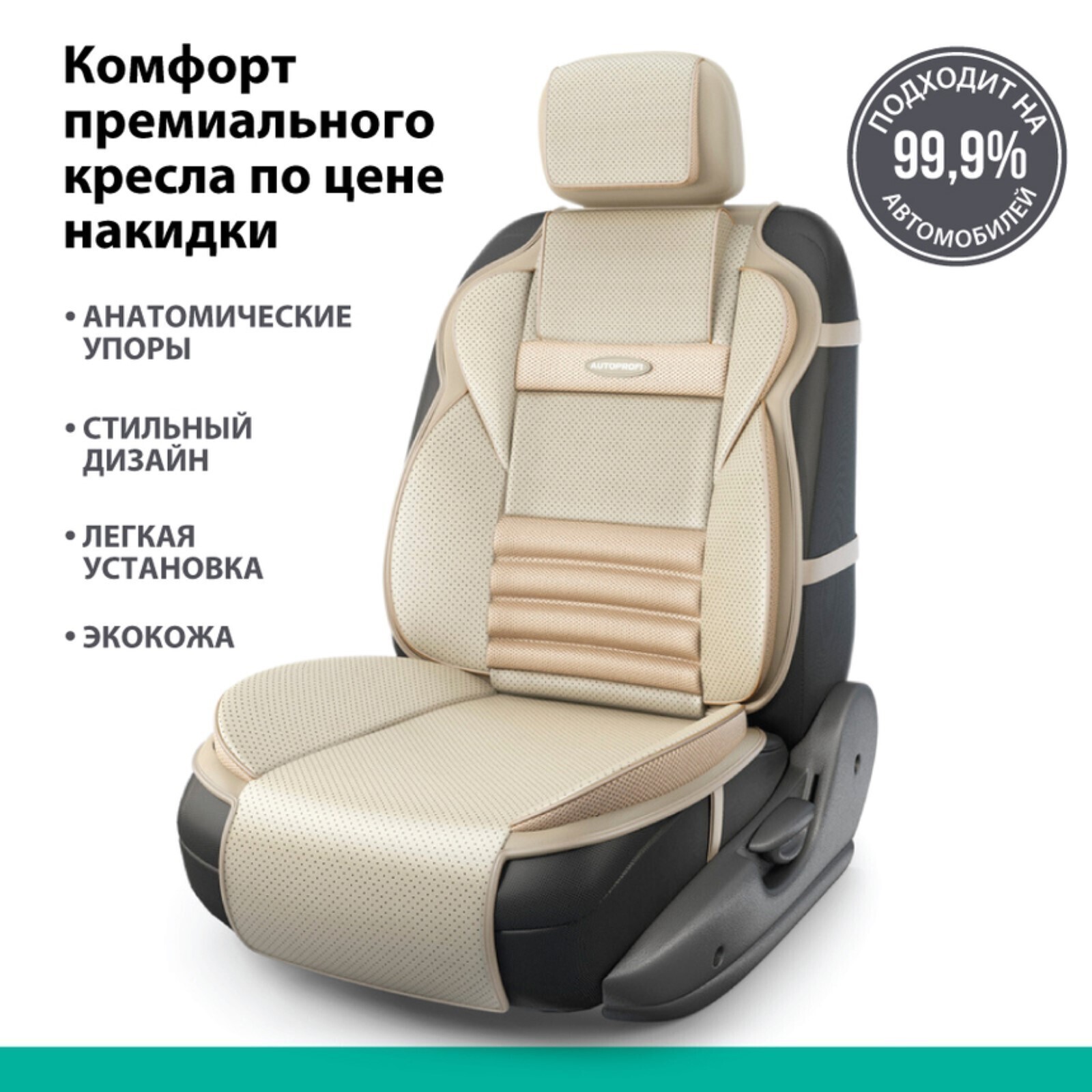 Накидка на сиденье ортопедическая Multi Comfort, 6 упоров, 3 предмета, экокожа, бежевый