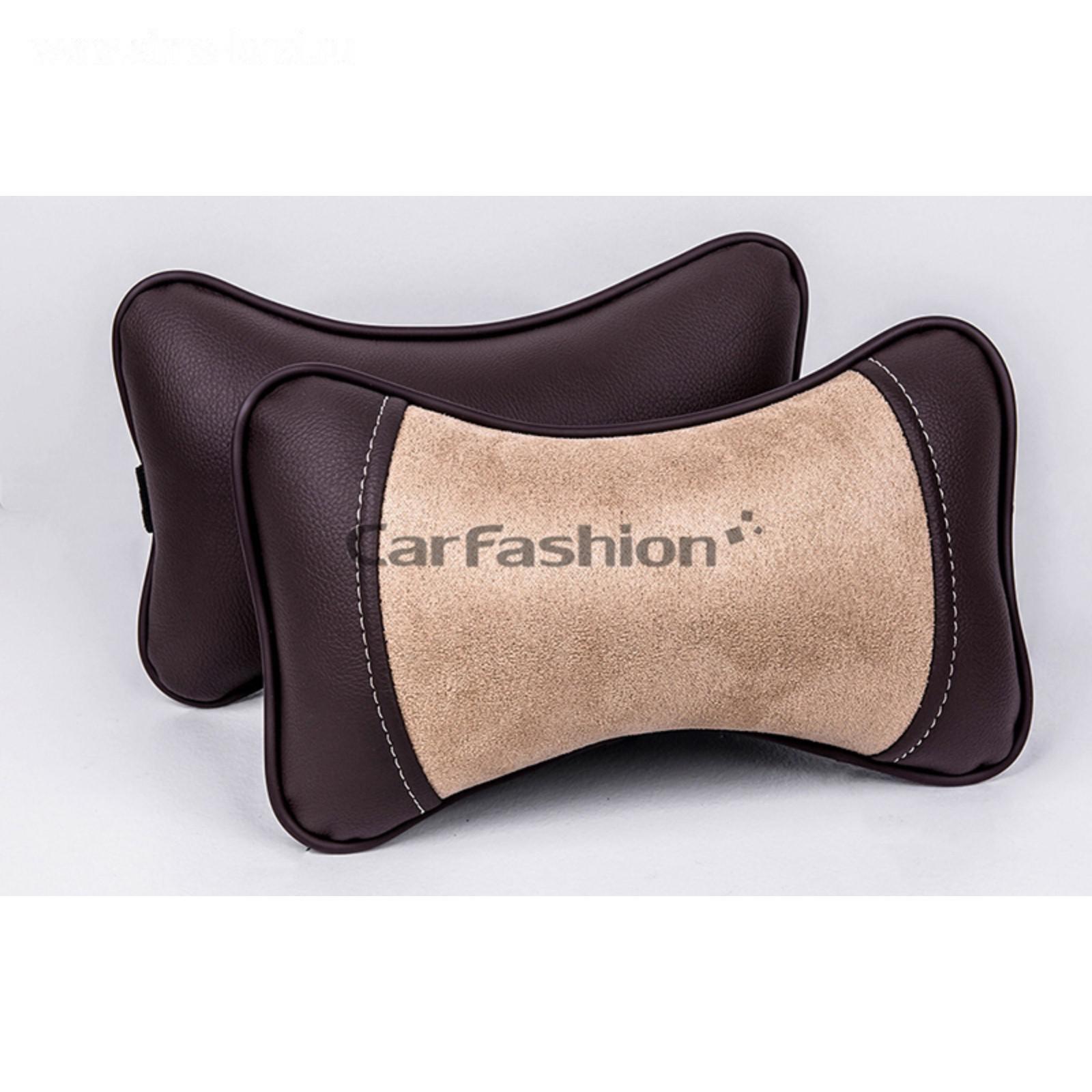 Подушка автомобильная, для шеи Stalker, экокожа-велюр, бежевый/кофе/бежевый, 2 шт