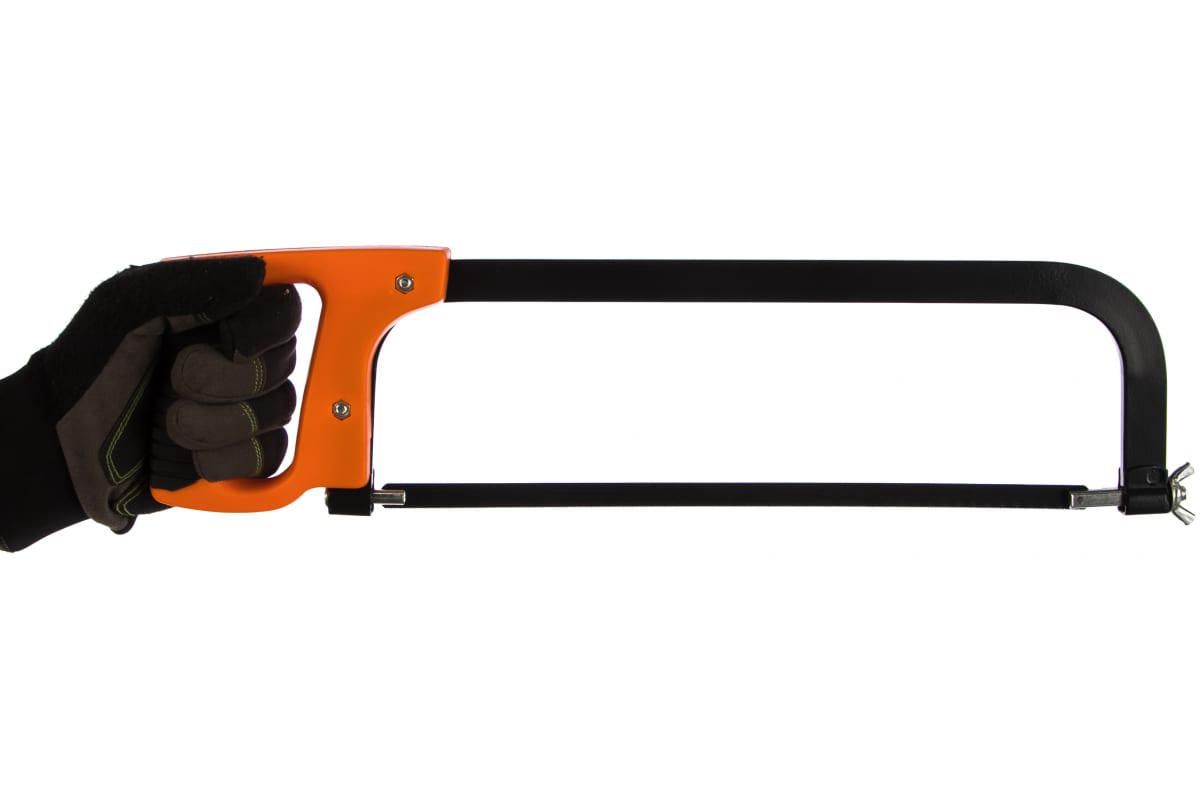 Усиленная ножовка по металлу. Оснащена удобной рельефной рукояткой для надежного удержания инструмента.