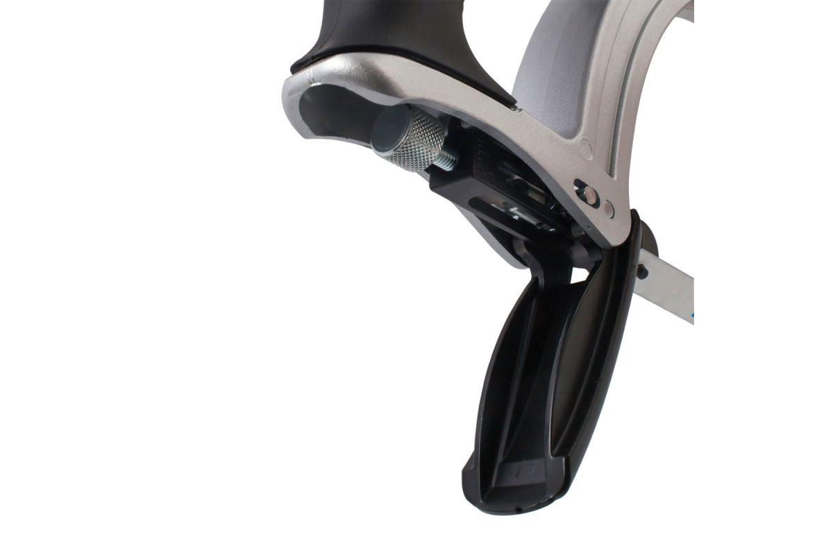 Натяжение полотна настраивается с помощью простого механизма на корпусе. Позволит без труда работать одной рукой.