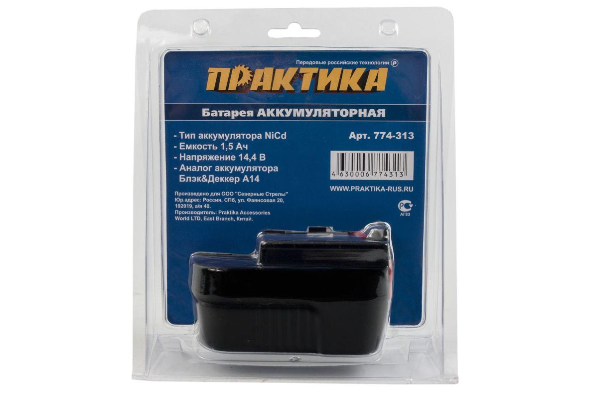 Аккумулятор ПРАКТИКА 774-313 14.4В 1.5Ач NiCd для B&D NiCd 14.4В, 1.5Ач, для B&D (1шт.) в блистере аналог A14