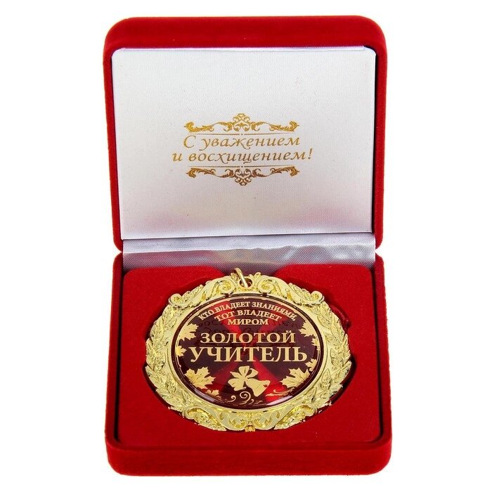 Медаль в бархатной коробке "Золотой учитель", диам. 7 см