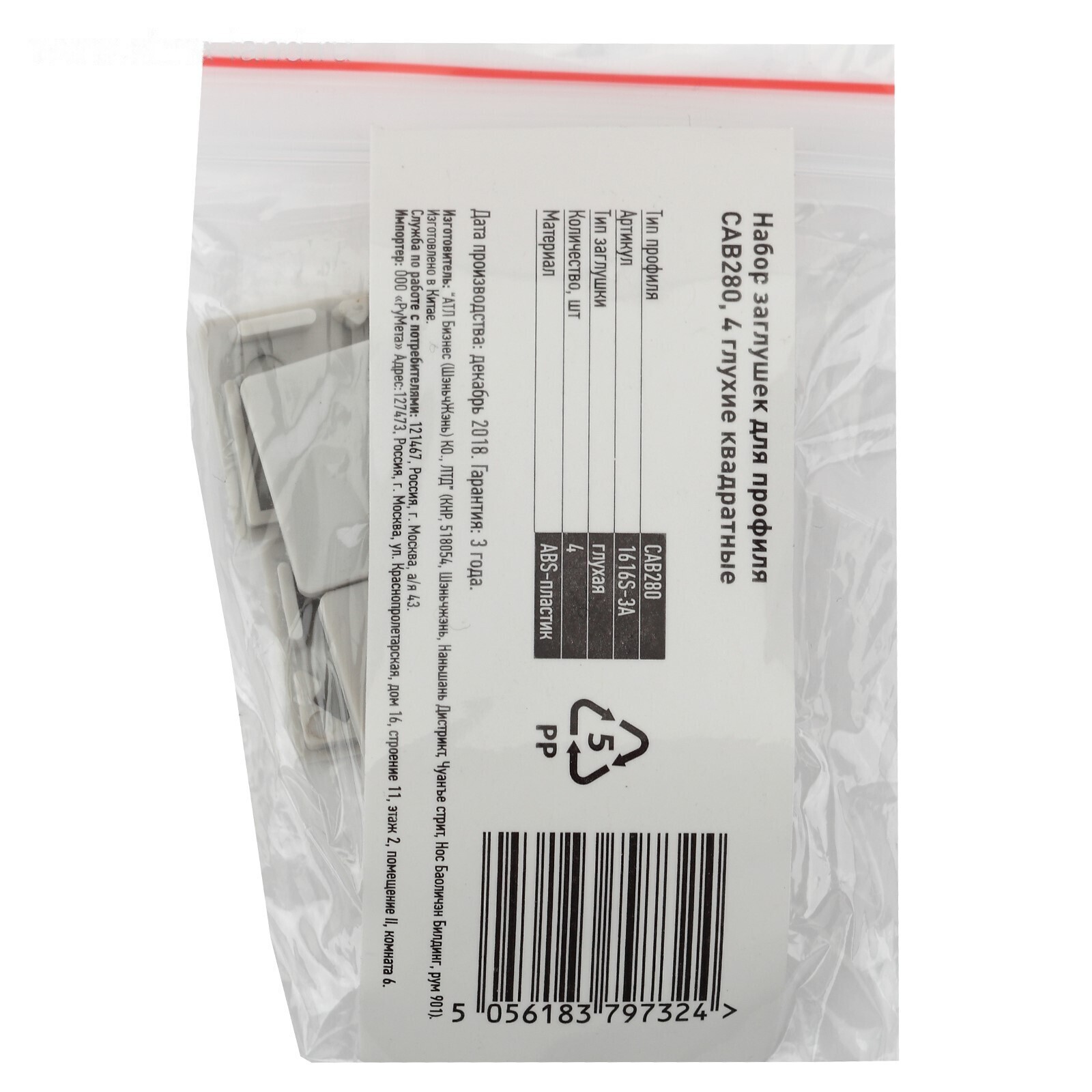 Набор заглушек для профиля CAB280, 4 глухие квадратные в 1 наборе
