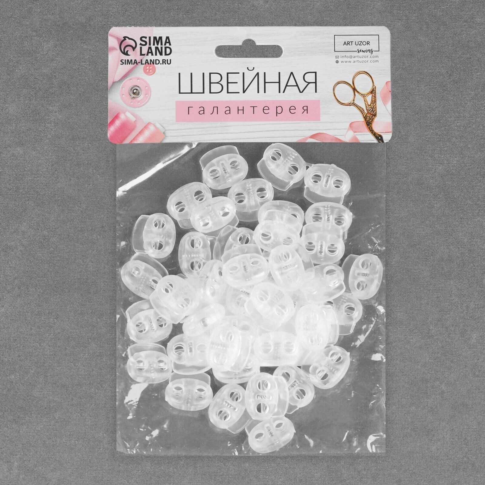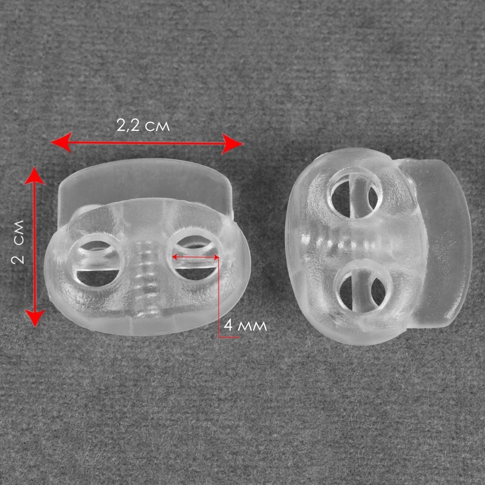 Набор двойных фиксаторов для шнура, d = 4 мм, 2 × 2,2 см, 50 шт, цвет прозрачный