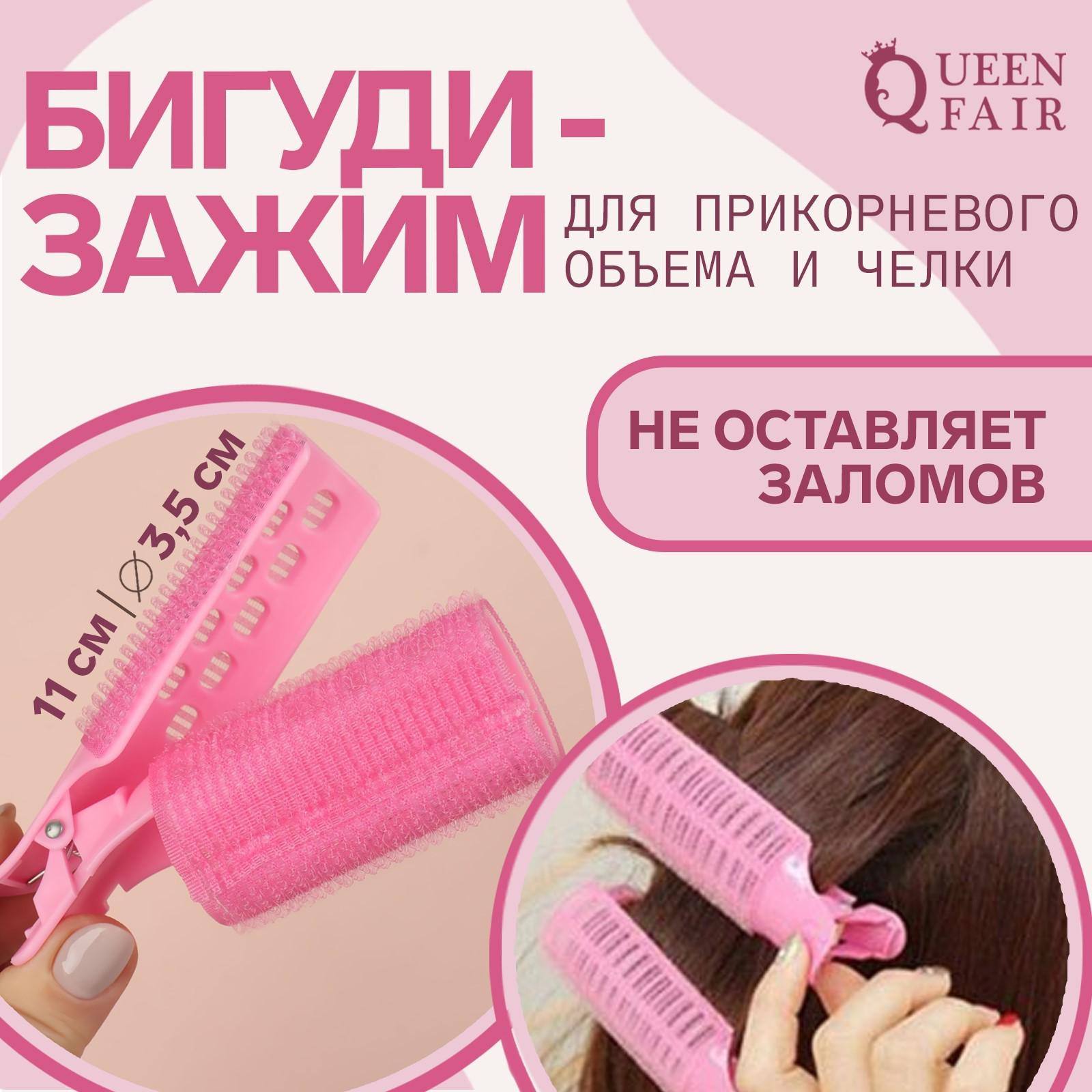 Бигуди для чёлки, с зажимом, d = 3,5 см, 11 см, цвет розовый