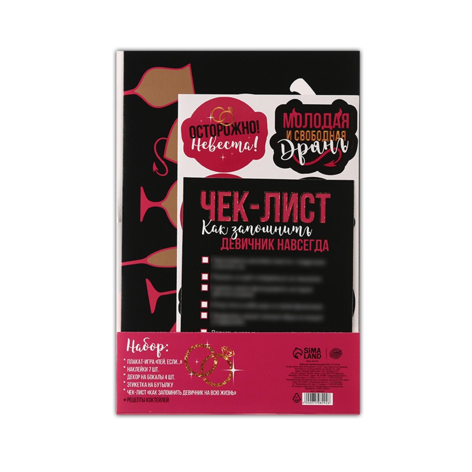 Устройте самый веселый, яркий и неповторимый праздник для невесты, который останется в памяти надолго. И абсолютно неважно, где вы проводите этот день - дома, в ресторане, на природе. Эта игра поможет отметить его весело, душевно и незабываемо. Подготовьте для каждой участницы любимые напитки и прекрасное настроение! Игра предусмотрена на 7 участниц, но по желанию можно увеличить количество человек. Сценарий включает в себя игру "Пей, если" и атрибут для неё в виде плаката размером 29,7 х 39 см , также в наборе вы найдёте наклейки 7 шт., декор на бокалы 4 шт., этикетку на бутылку и чек-лист "Как запомнить девичник на всю жизнь". Бонусом к игре будут рецепты самых "весёлых" коктейлей.